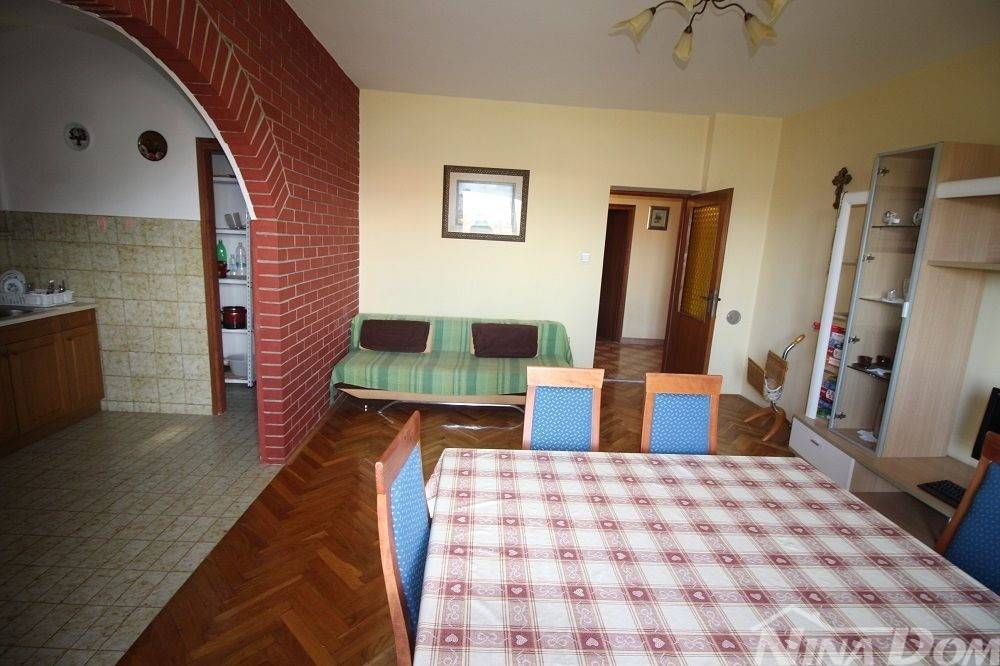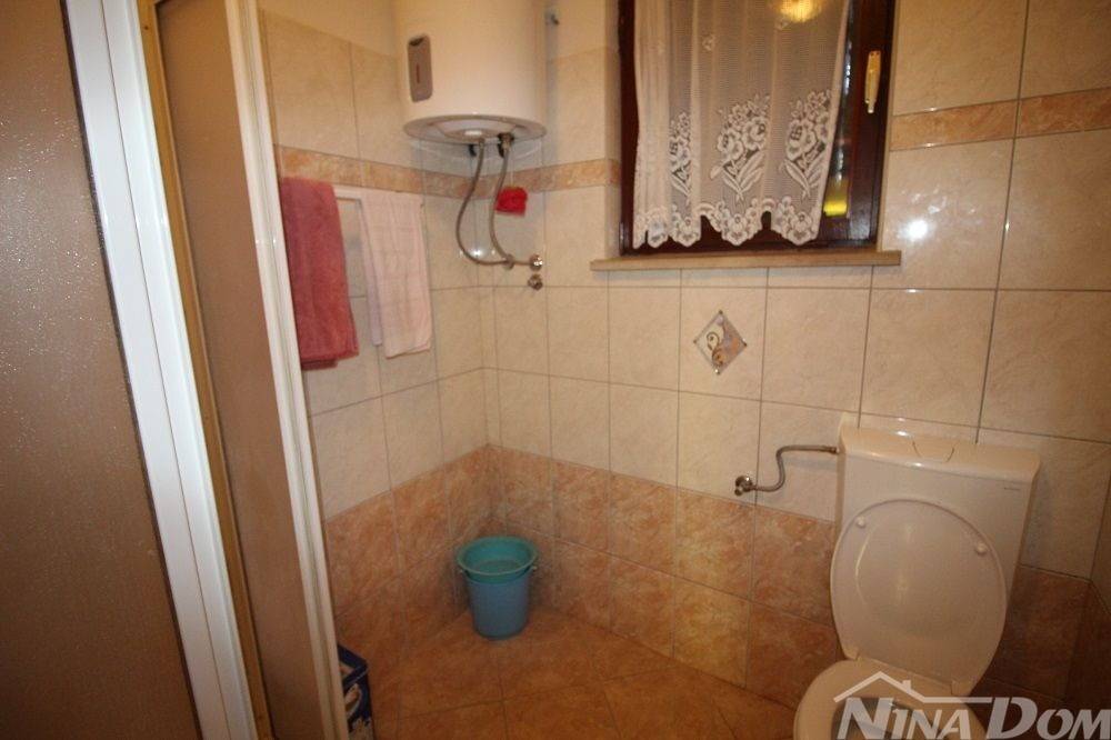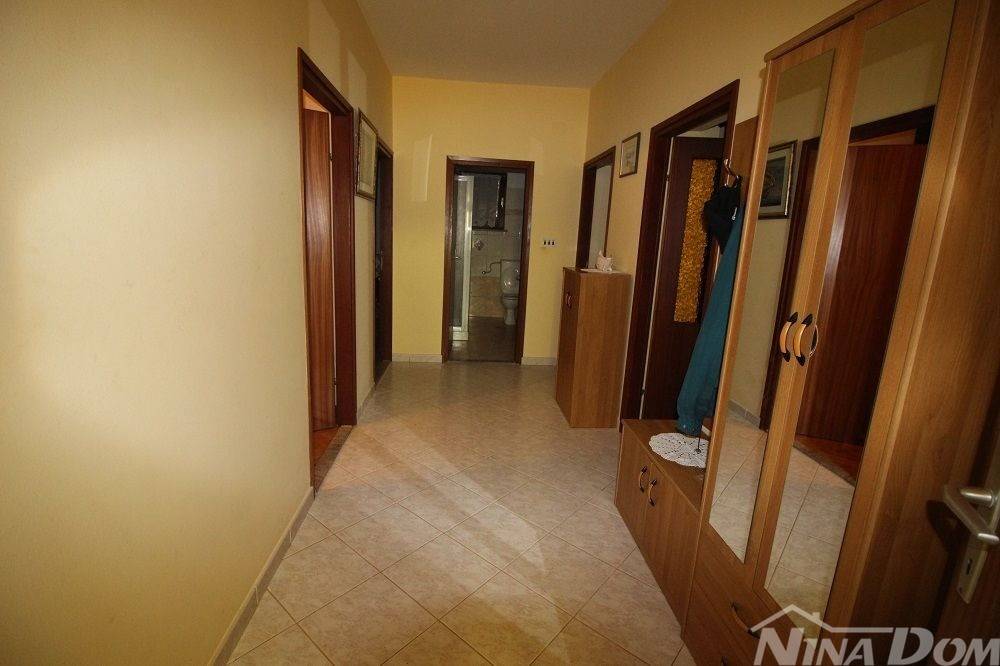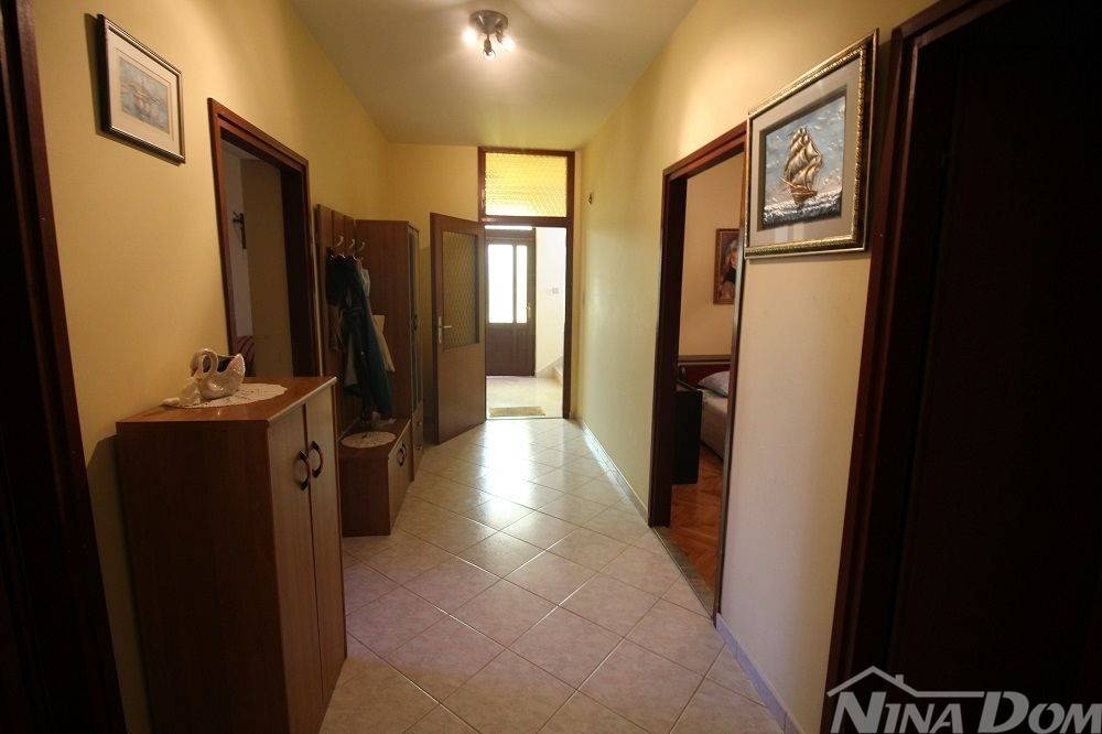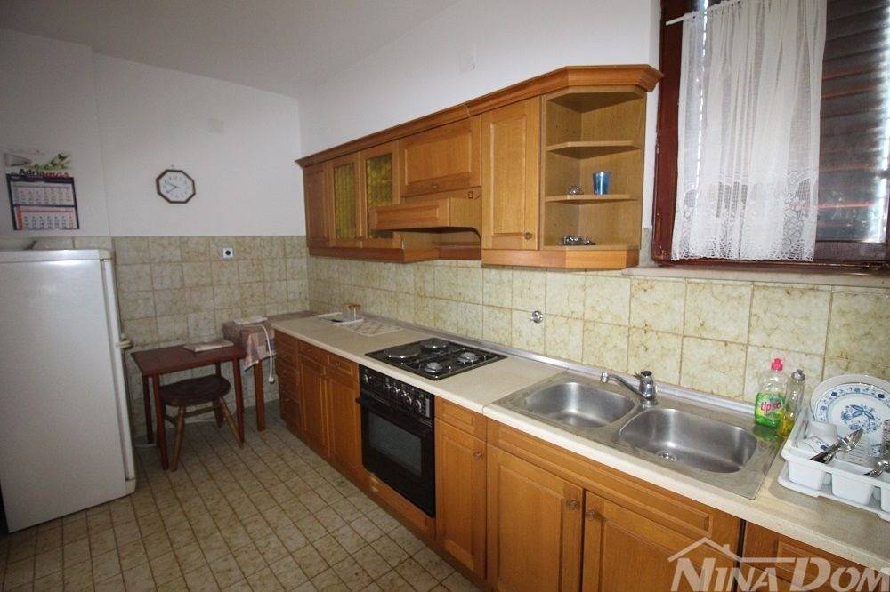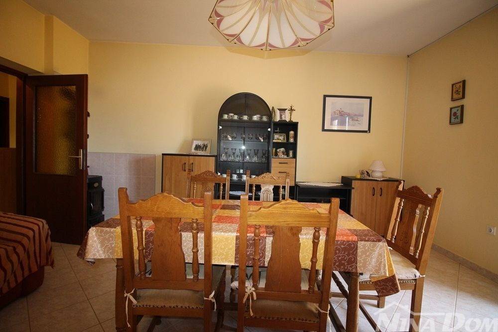 Prizemlje: predulaz, hodnik, tri spavaće sobe, kupaona, blagovaona-dnevni boravak, kuhinja i špajz. Velika terasa. Kat je identičan.