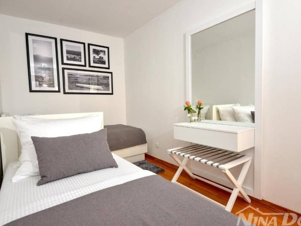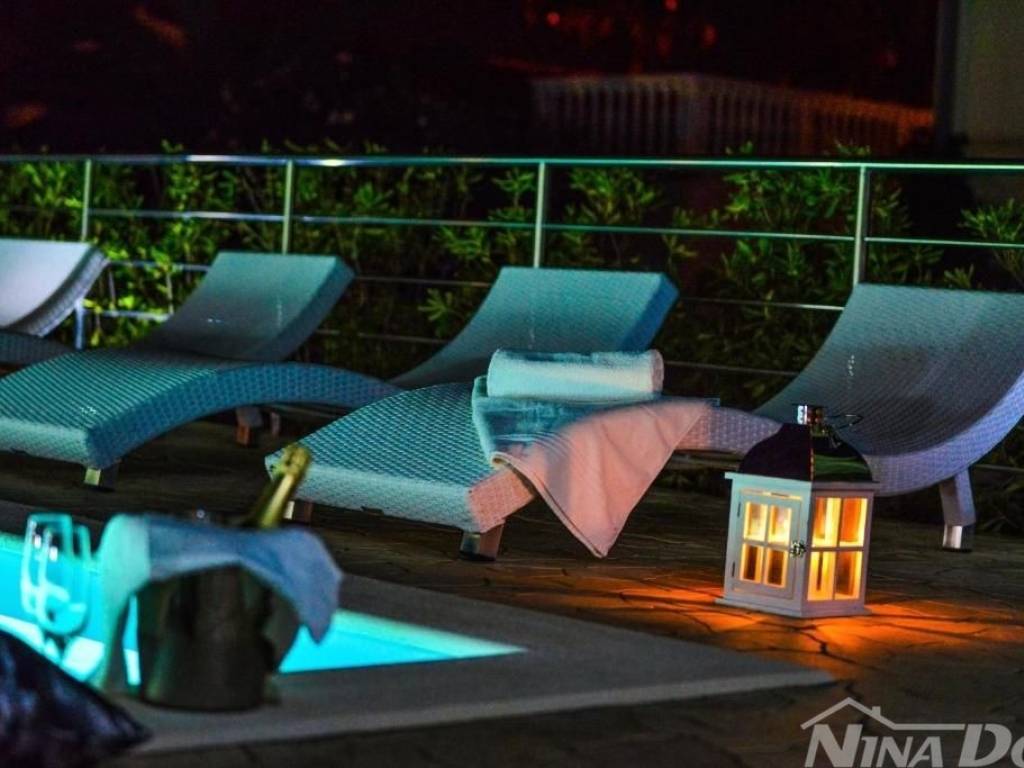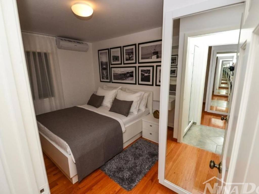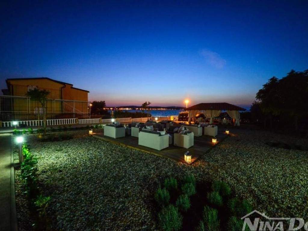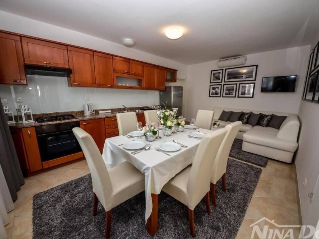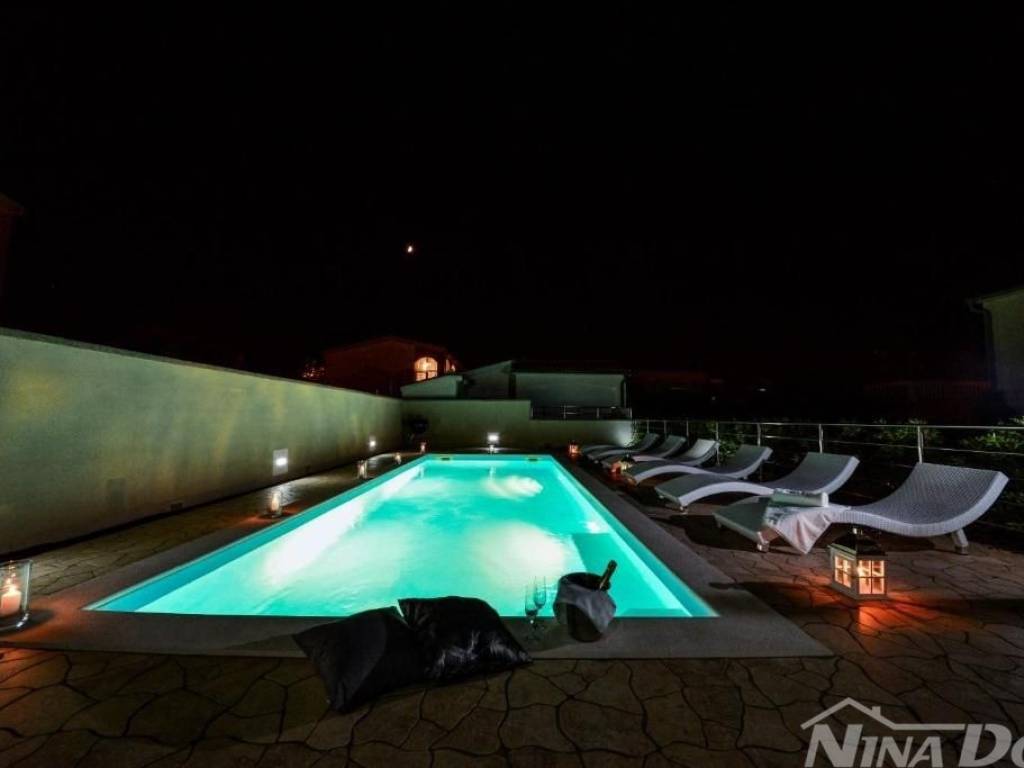 Prodaje se luksuzna villa na top lokaciji, 2 red do mora i uređene plaže na otoku Viru. Sastoji se od tri zasebna stana, koji sadrže sedam spavaćih soba, pet kupatila, tri dnevna boravka sa blagovaonamai i kuhinjama, prostorija za fitness te prostorije za zabavu. Okućnicu kuće krasi prekrasno uređeno dvorište sa bazenom i mjestom za odmor. U dvorištu se nalazi i garaža.Grinjanje je izvedeno uz pomoć klima jedinica. Prekrasan pogled na more proteže se sa dvije velike terase i četiri balkona.