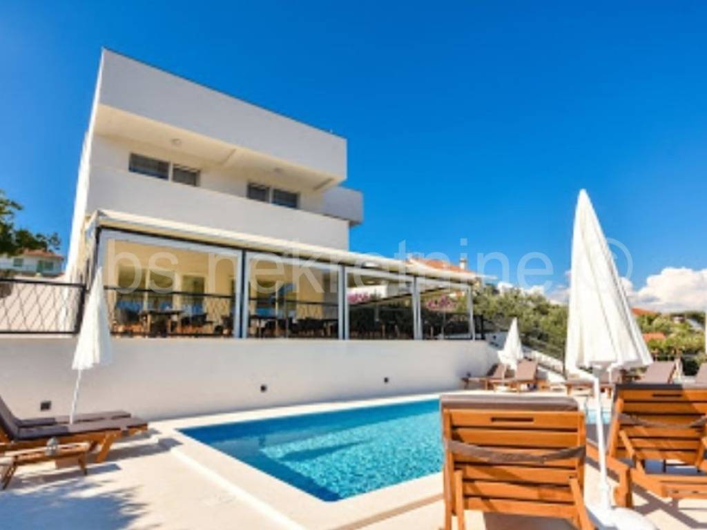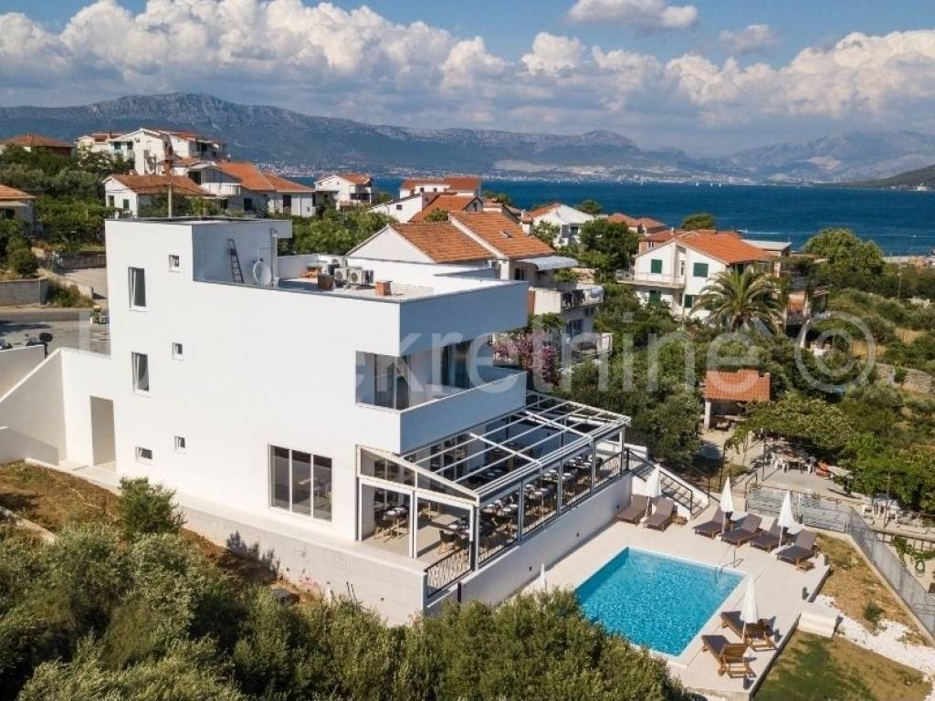 ČIOVO SLATINE: Villa mit Pool und Erweiterungsmöglichkeit (320 m) Standort: Slatine, Insel Čiovo Immobilientyp: Villa Wohnfläche: 320 m Grundstücksfläche: 955 m Entfernung zum Meer: 200 m Erweiterungsmöglichkeit: JA (Baugenehmigung vorhanden) Parkplätze: 7 Immobilienbeschreibung: In attraktiver Lage in Slatine auf der Insel Čiovo vermitteln wir den Verkauf einer Villa mit Pool und einer Gesamtfläche von 320 m. Das Anwesen befindet sich auf einem 955 m großen Grundstück, nur 200 m vom Meer entfernt, und bietet zahlreiche Möglichkeiten sowohl zur Eigennutzung als auch zur touristischen Vermietung oder Gastronomie. Grundriss: Erdgeschoss: Geräumiges Wohnzimmer Esszimmer und moderne Küche Ausgang zu einer möblierten 150 m großen Terrasse mit Blick auf den beheizten Pool (30 m) Obergeschoss: 4 luxuriös eingerichtete Schlafzimmer: Eigenes Badezimmer Balkon mit Meerblick Zusätzliche Vorteile: Baugenehmigung für eine zusätzliche Etage bereits erteilt Landschaftlicher Garten Nähe zu Geschäften, Strand und Stadtzentrum Ideal für eine touristische Investition. Für weitere Informationen und eine Besichtigung kontaktieren Sie uns bitte.
