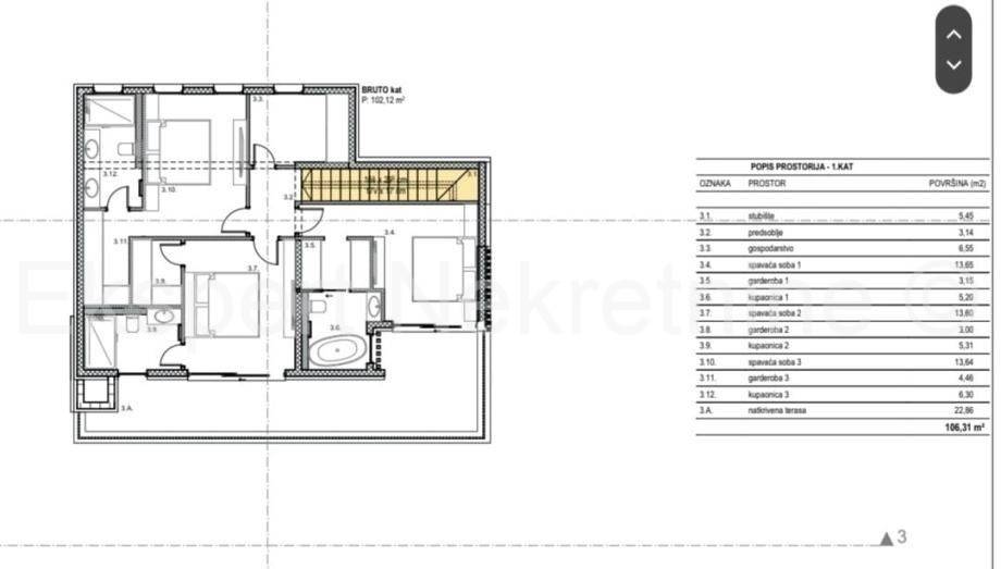Die Stadtvilla würde aus einem Keller, einem Erdgeschoss und einem ersten Stock bestehen (alles, was auf den Bildern zu sehen ist).