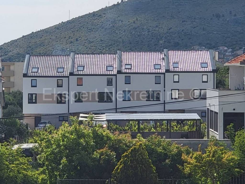 Trogir, dreistöckige Vierzimmerwohnung 137 m2 m2 in einem kleineren Wohnviertel in einem Neubau. Dieses Haus befindet sich auf einem eigenen Grundstück von 155 m2 und erstreckt sich über drei Etagen Es gibt einen überdachten Eingang, eine Küche mit Esszimmer und ein großes Wohnzimmer, ein Badezimmer und den Ausgang vom Wohnzimmer zum ca. 50 m großen umzäunten Garten sowie eine Innentreppe, die in den ersten Stock führt Es gibt einen Flur, zwei Schlafzimmer, ein Arbeitszimmer, eine Waschküche und ein Badezimmer sowie eine Treppe zu einem hohen Loft, in dem sich ein Flur, ein großes Schlafzimmer mit eigenem Bad und Kleiderschrank sowie eine große Terrasse (15 m) mit offenem Eingang befinden Blick auf die Stadt und teilweise auf das Meer, von dem das Haus ca. 750 m entfernt ist. Vor dem Haus befinden sich zwei Parkplätze. Das Haus befindet sich in einer ruhigen und ruhigen Lage und wird in ca. 2 Monaten bezugsfertig sein. Hochwertige Ausstattung (Inverter-Klimaanlage, Fußbodenheizung, PVC-Tischlerei, Qualitätskeramik nach Wahl des Kunden). . Einbruchhemmende Türen, Moskitonetze, Thermofassade usw. Eigentum in Ordnung.