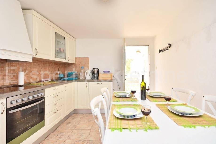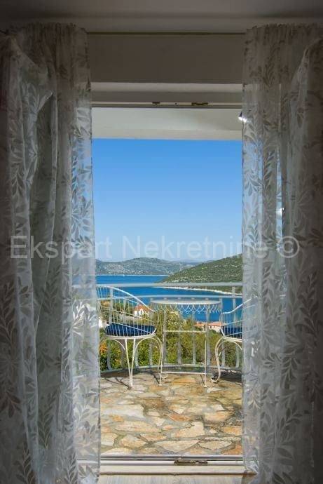 Trogir-Okolica, Drvenik Veliki, Einfamilienhaus 160m2 auf einem Grundstück von 505m2, nur 220m vom Meer und Strand entfernt. Das Haus besteht aus zwei Etagen: Erdgeschoss und erster Stock und verfügt über vier Schlafzimmer, drei Badezimmer, ein Wohnzimmer mit Küche und Esszimmer sowie einen Balkon. Vor dem Haus gibt es einen Parkplatz, eine Terrasse und einen Garten. Die Terrasse und der Balkon bieten einen herrlichen Blick auf das Meer. Eigentum in Ordnung. Für alle Informationen wenden Sie sich bitte an die Agentur.