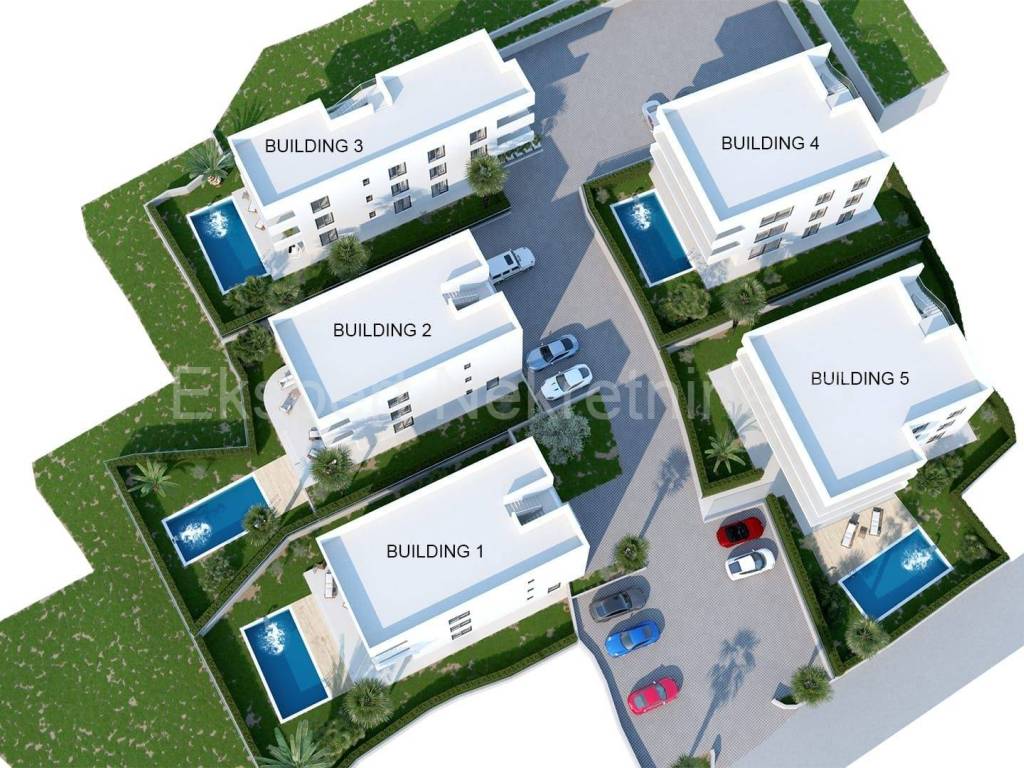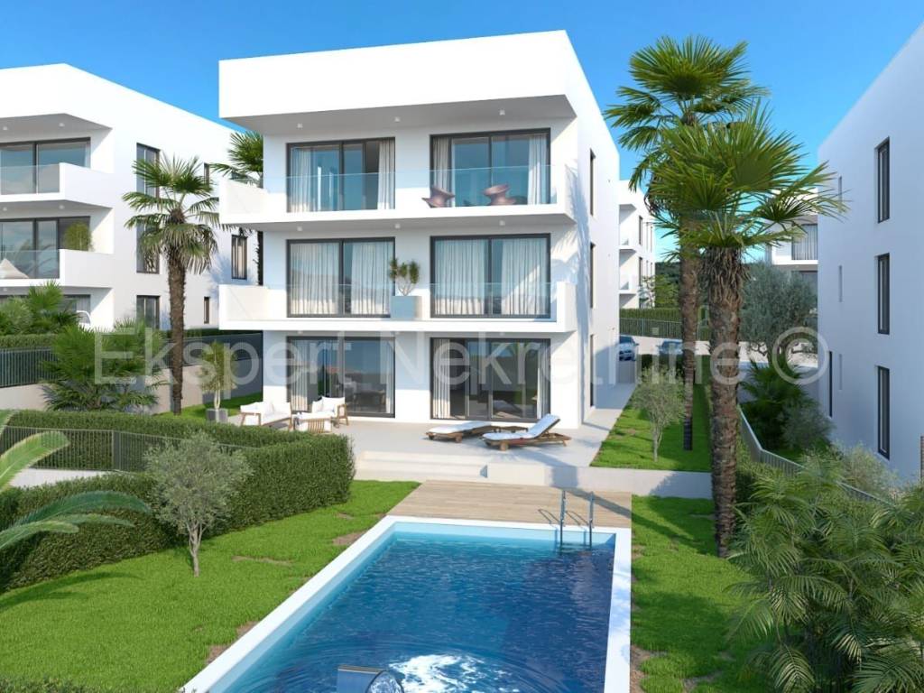 Čiovo,OkrugGornji, Komplex aus fünf modernen Villen,Dreizimmerwohnung 154,44 m2 im Erdgeschoss eines neuen Gebäudes mit Garten und Swimmingpool.