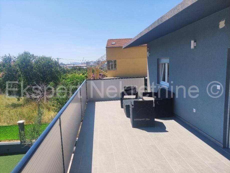 Split, Bilice, Doppelhaushälfte 160m2 auf einem Grundstück von 350m2 mit einem Swimmingpool 26,25m2 Es besteht aus einem unmöblierten Erdgeschoss als separater Einheit und einem möblierten Obergeschoss. Möglicher Umtausch gegen andere Immobilien und Entschädigungen.