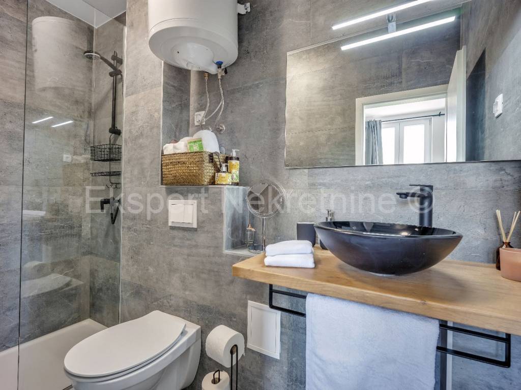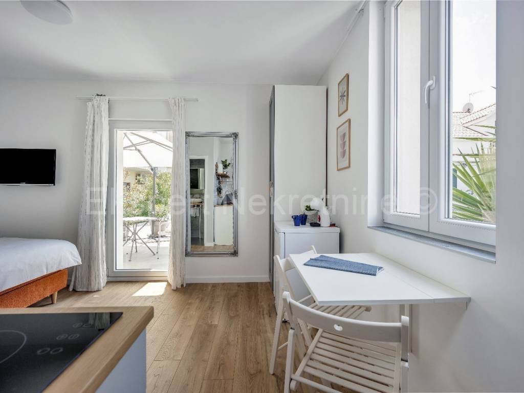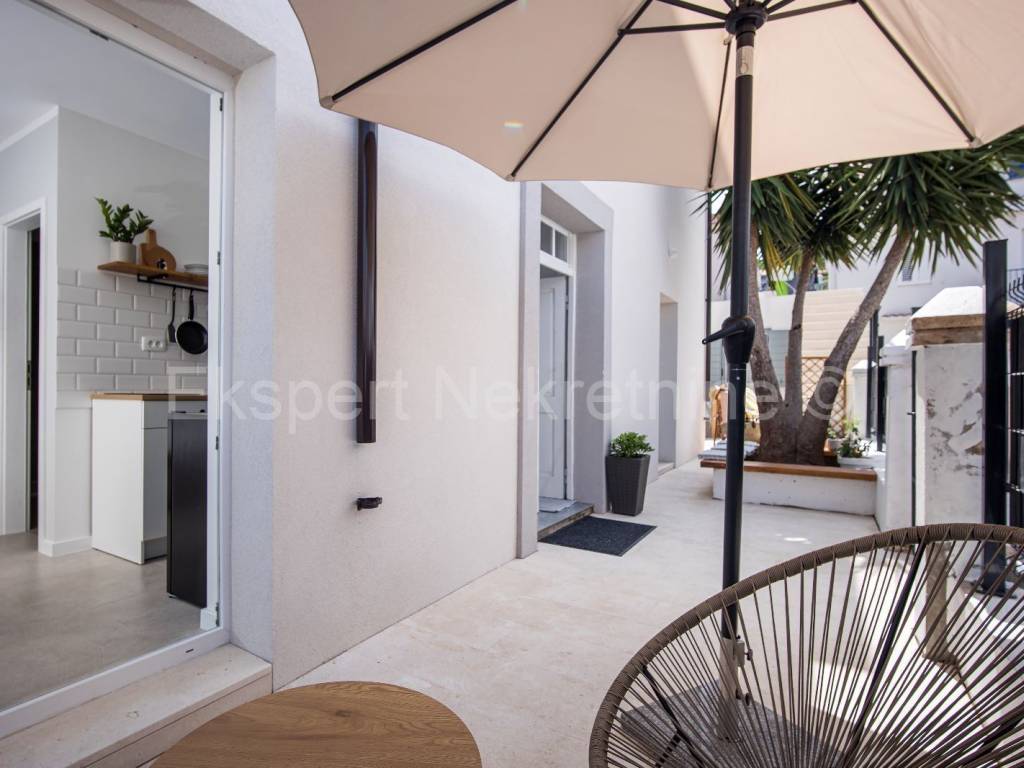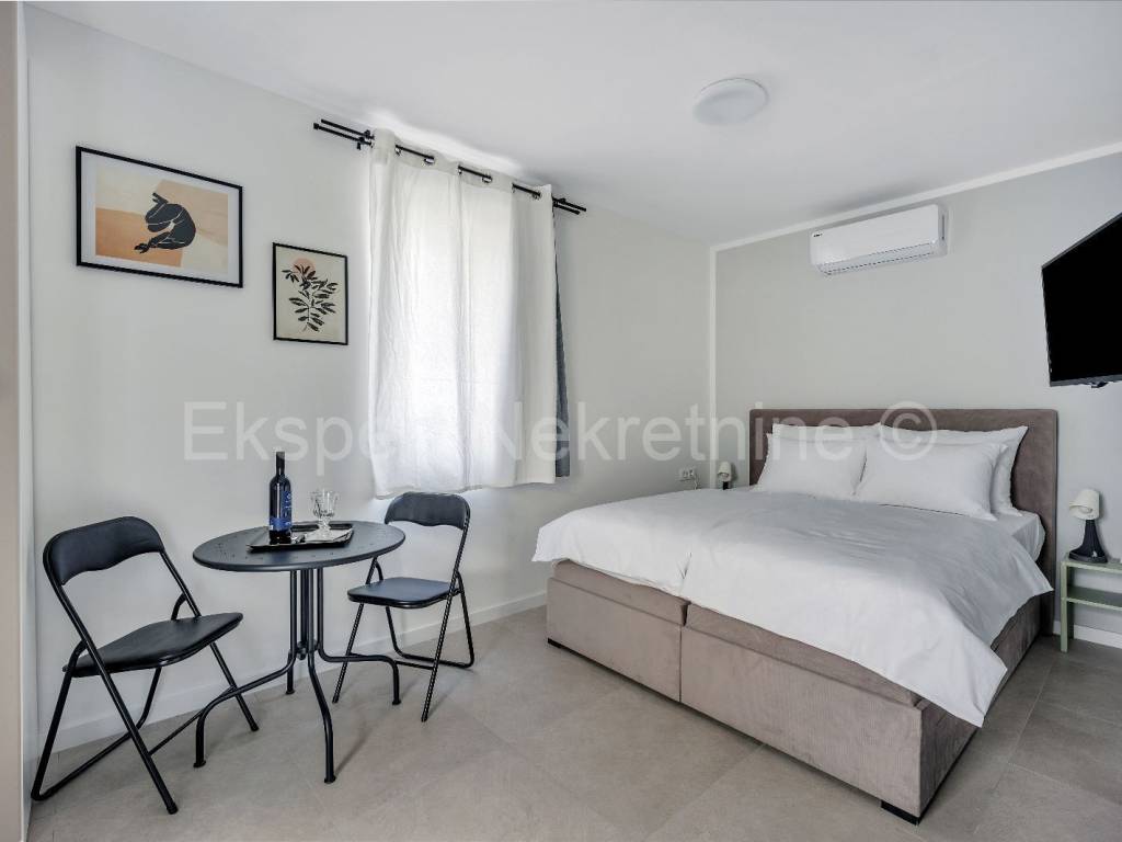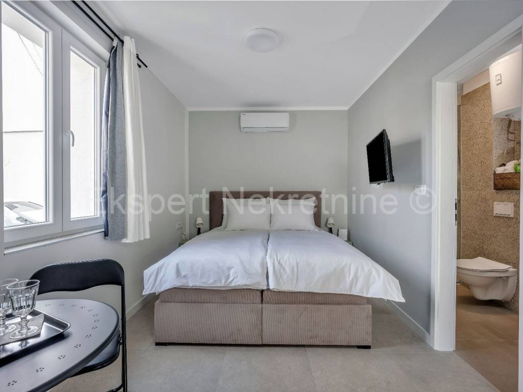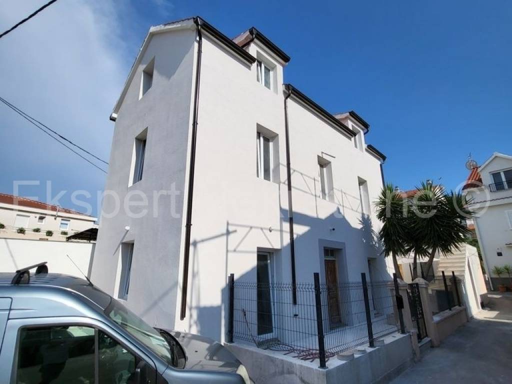 Trogir, Čiovo, nahe dem Zentrum, freistehendes Haus von 200 m2 auf drei Etagen, komplett renoviert. Das Haus liegt in einer ruhigen Gegend in unmittelbarer Nähe des alten Stadtzentrums, auf einem Grundstück von 185 m2, Grundrisshöhe 81 m2 , auf drei Etagen in Form von 4 Studio-Apartments, zwei im Erdgeschoss, zwei im ersten Stock und eine größere Open-Space-Wohnung im hohen Dachgeschoss mit Blick auf das Meer, sowie eine weitere Einzimmerwohnung als Nebenobjekt , und eine große Terrasse auf diesem Nebenobjekt. Das Haus verfügt über 4 Parkplätze und Umgebung. Es wurde komplett renoviert, von der Fassade bis zur Elektro- und Wasserinstallation, neuem Dach, neuen Badezimmern usw. Das Haus ist komplett mit neuen Möbeln ausgestattet und moderne Möbel und wird als solche verkauft. Ideal für die Touristenvermietung, teils wegen der Nähe zum Meer, teils wegen der Nähe zum alten Stadtzentrum. Richtiges Eigentum. Für weitere Informationen wenden Sie sich bitte an die Agentur.