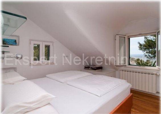 Wir vermitteln beim Verkauf von Luxusimmobilien auf Brač. Das Haus liegt direkt am Strand mit großem Garten und ist vor Blicken geschützt. Das Haus besteht aus einem Erdgeschoss mit einem Wohnzimmer und einem Schlafzimmer. Im ersten Stock gibt es eine Küche mit Esszimmer, ein Wohnzimmer und eine Toilette. Im Dachgeschoss befinden sich zwei Schlafzimmer mit zwei Badezimmern.