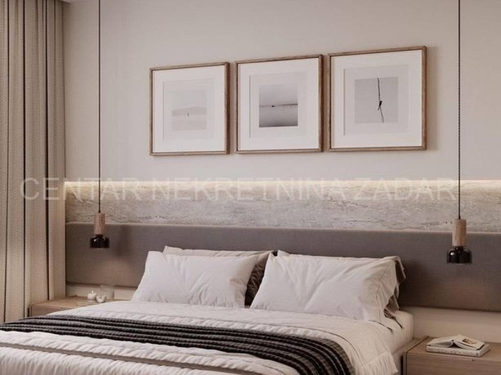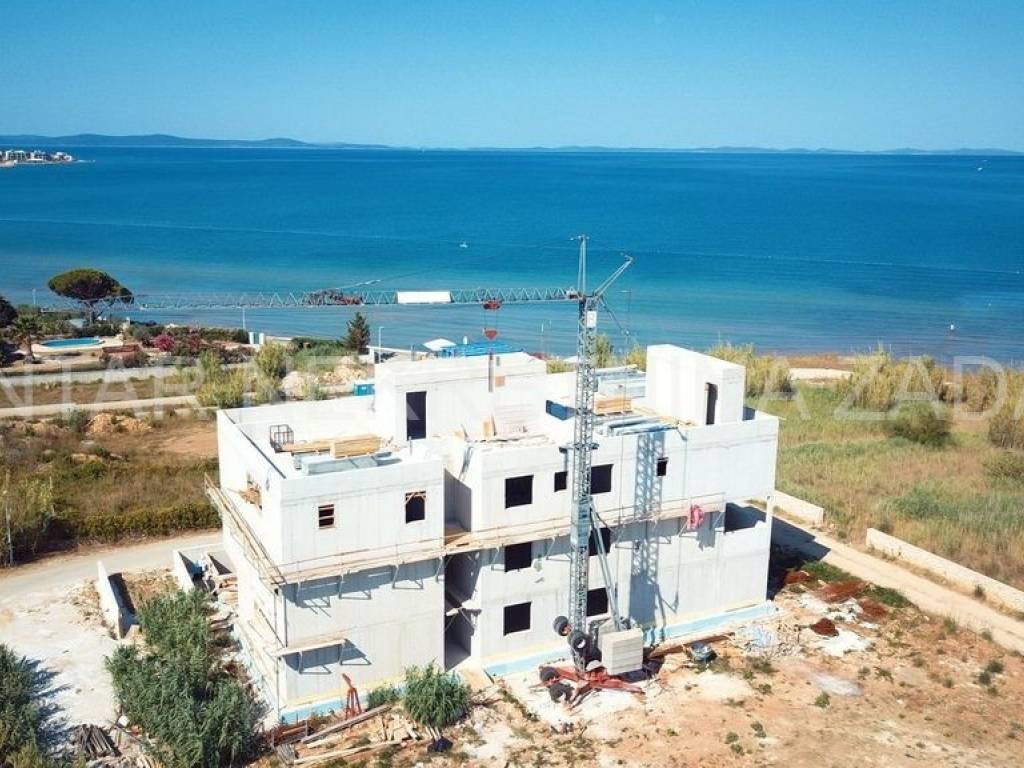 Two-bedroom apartment for sale on the first floor, 60 m from the sandy beach. The building is a new building with 8 apartments, and is located in a quiet part of Privlaka. It has an area of 70.80 m, and consists of a kitchen with a dining room, a living room, two bedrooms, a bathroom, a toilet and an entrance hall. It also has a covered terrace (17.10 m2, i.e. with a coefficient of 8.55 m2) and a parking space (11.50 m2, i.e. with a coefficient of 2.30 m2). The apartment is equipped with: Smart Inverter air conditioning, underfloor heating in the bathroom, living room and dining room, top-quality interior joinery, PVC joinery with electrically operated ALU roller shutters, triple-layer glass with Low-e coating and mosquito nets. Floors - parquet and I. class ceramics. The apartment is sold unfurnished with the possibility of furnishing. It also has a high energy standard (A class).
