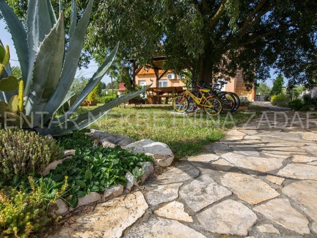 The spacious yard is fully landscaped. More than twenty fruit trees (grapefruit, tangerine, orange, cherry, sour cherry, peach...) and over a hundred different types of flowers give the house a special atmosphere. In the yard there is a gazebo with a space for socializing and a built-in barbecue, and the paved part of the yard allows parking for several vehicles. There is also a woodshed and two storage rooms.