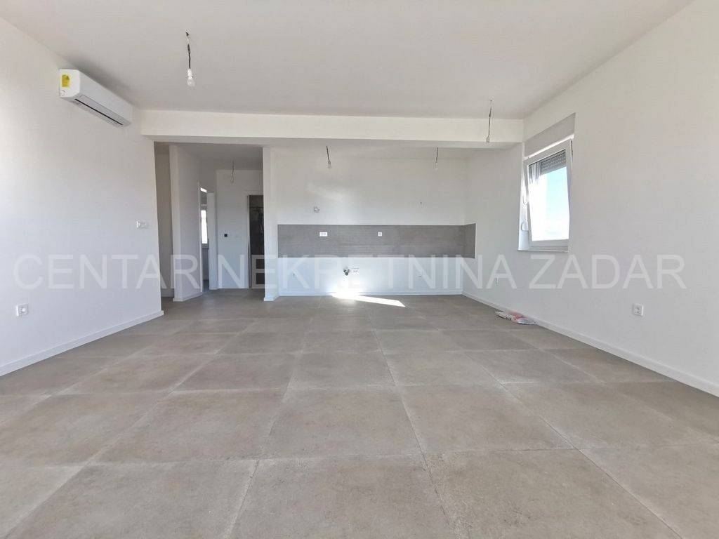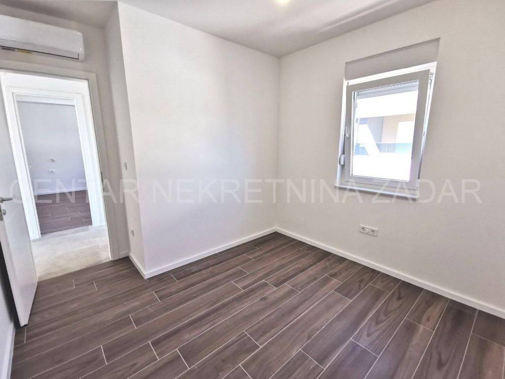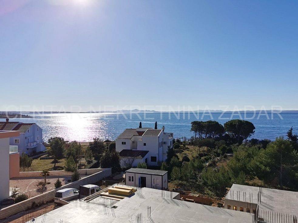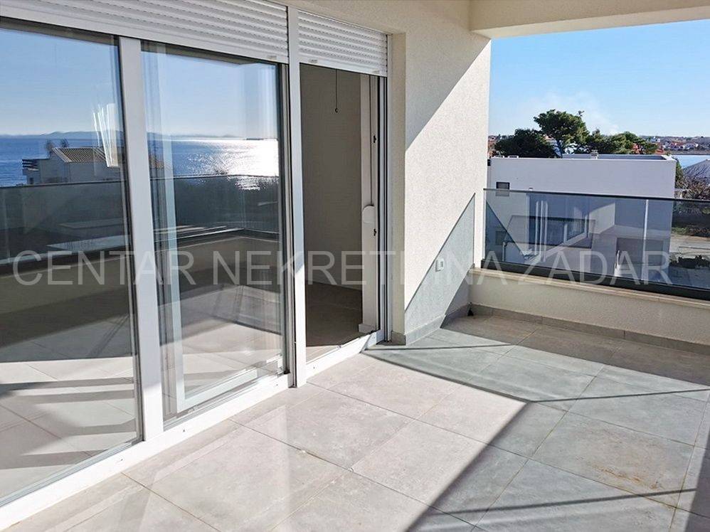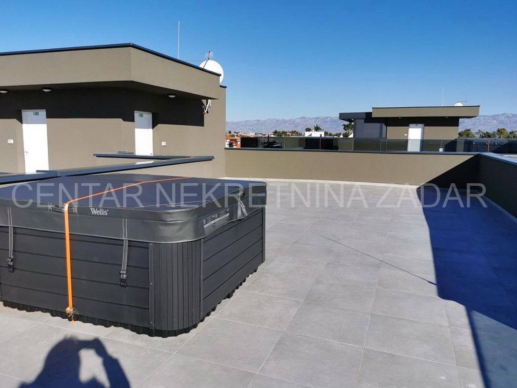 For sale is a luxurious penthouse with a roof terrace and a jacuzzi on the 2nd floor of a residential building with a total of ten residential units. The apartment has 86.46 m2, i.e. 80.03 with the coefficient, and consists of a hallway (5.76), living room with kitchen and dining room (36.84 m2), bathroom (4.29 m2), hallway (2.59 m2), two bedrooms (10.35 m2 and 13.77 m2) and a covered terrace with a sea view (12.86 m2, i.e. 6.43 m2 with coefficient). The apartment also has its own roof terrace of 88.92 m2 or 22.23 m2 with coefficient. There is a jacuzzi on the roof terrace, and the terrace offers a beautiful view of the sea and the Zadar channel! The apartment also has one outdoor parking space (12.50 m2, i.e. 2.50 with coefficient) within the property. This building also has a swimming pool for tenants in the yard, and during the design, care was taken to place it on a part of the field where the intimacy of the apartments is not disturbed.Construction by a reliable investor, high quality, functional and carefully designed floor plans. Each residential unit will have a smart Inverter air conditioning heating and cooling system, underfloor heating in the bathroom, top-quality interior carpentry with full stocks of modern design and lines, modern six-chamber PVC exterior carpentry with iso triple-layered glass and Low-e coating on the outside of renowned European manufacturers. The exterior carpentry is equipped with electrically operated ALU shutters and integrated mosquito nets. Top-quality sanitary equipment from renowned EU manufacturers, first-class parquet and ceramics, preparation for smart installation, smart key card for entering the building. The building has a video intercom, a charging station for electric vehicles, a thermal facade, and all structural elements are constructed according to the highest standards in earthquake engineering (9 seismic zones).The immediate proximity to the sea (100 m), the sea view, and the simplicity and functionality of the floor plan, along with luxury and comfort, are the features of this project that will satisfy even the most demanding customers.