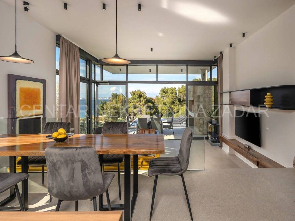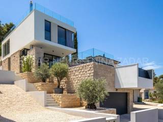 This luxury villa is a newly built facility located just a few steps from the sea coast on the beautiful Dalmatian island of Ugljan, which delights with its natural beauty, landscape and untouched nature. This villa offers stunning sea views, a private pool and close to the beach. Built in a contemporary style, the interior of this luxurious villa stands out for its clear lines and refined modern style. The ground floor of the villa is spread over three cascades, connecting the entrance of the house with a modern kitchen and dining room, a living area and a stunning garden with a swimming pool.Through the sliding glass door, the length of the wall, the bright and spacious living room opens onto a large terrace that is partially shaded for the hottest hours of the day. The outdoor terrace has a seating area and an outdoor grill, with a view of the beautiful infinity pool and the sea.There is also an additional toilet and laundry room on the ground floor. On the upper floor there are three bedrooms, each with its own bathroom (two with a shower and one with a bathtub). The property is surrounded on the side by beautifully lit stairs and olive trees that give the villa a special atmosphere at night. There are two garage spaces within the property.The island of Ugljan is an integral part of the Zadar archipelago and at the same time the closest island to the cultural and economic center of the county - the city of Zadar, from which it is only a few nautical miles away. Ugljan has a fairly indented coastline that is about 20 kilometers long, and is adorned with bays of various sizes and shapes. The main attributes of the bathing area on the island of Ugljan are crystal clear sea and untouched nature. Ugljan is also an ideal starting point for exploring the other islands of the Zadar archipelago, and attracts many sailors, sports fishermen, divers and fans of other water sports. Across the island of Ugljan, there are kilometers of bicycle paths, so a bicycle is the ideal means of transportation for exploring this island, as well as the neighboring island of Pašman, which is connected to it by a bridge.