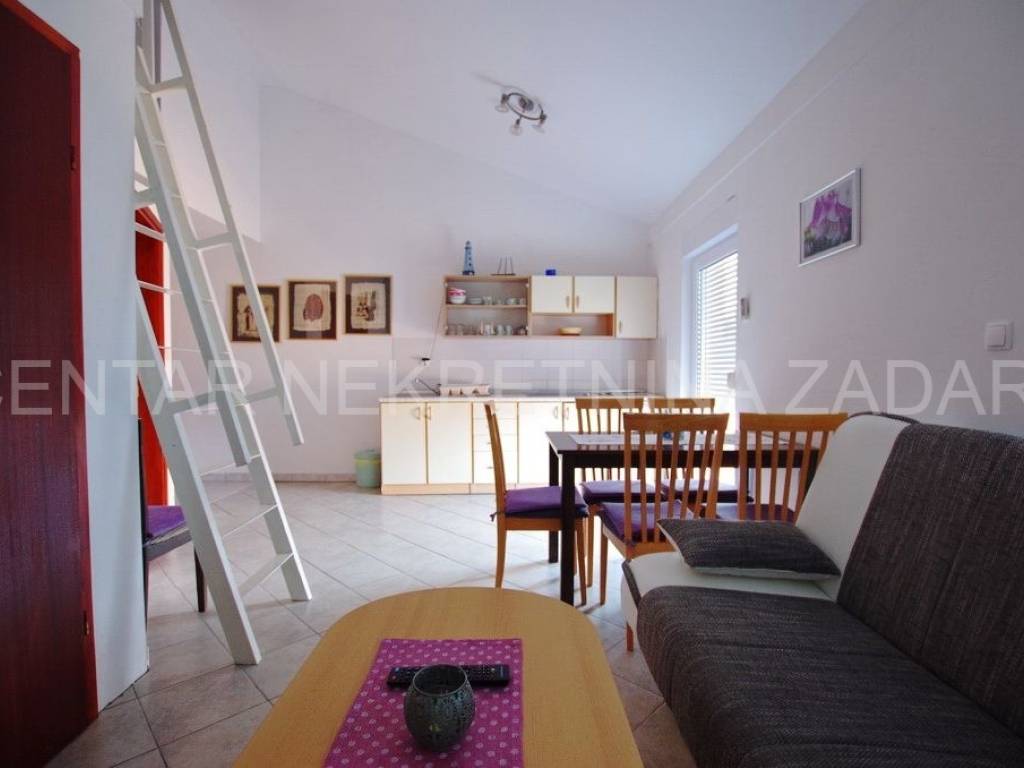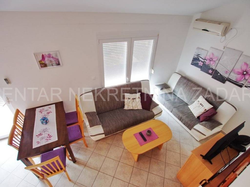 The house has five residential units (three one bedroom apartments and two two bedroom apartments). All apartments have separate entrances and are of similar layout, consisting of: a spacious open concept kitchen with a dining room and a living room, a terrace overlooking the sea, a bathroom, two bedrooms and a storage. Both from the ground floor and the first floor, the house has a beautiful panoramic view at the sea and the village of Sukošan. The apartment in the basement has a summer kitchen with a barbecue on the terrace. Heating and cooling is provided with one air condition per apartment.