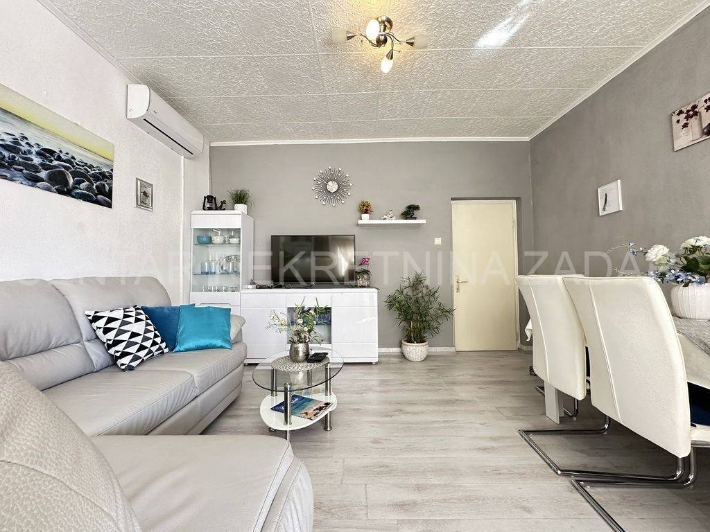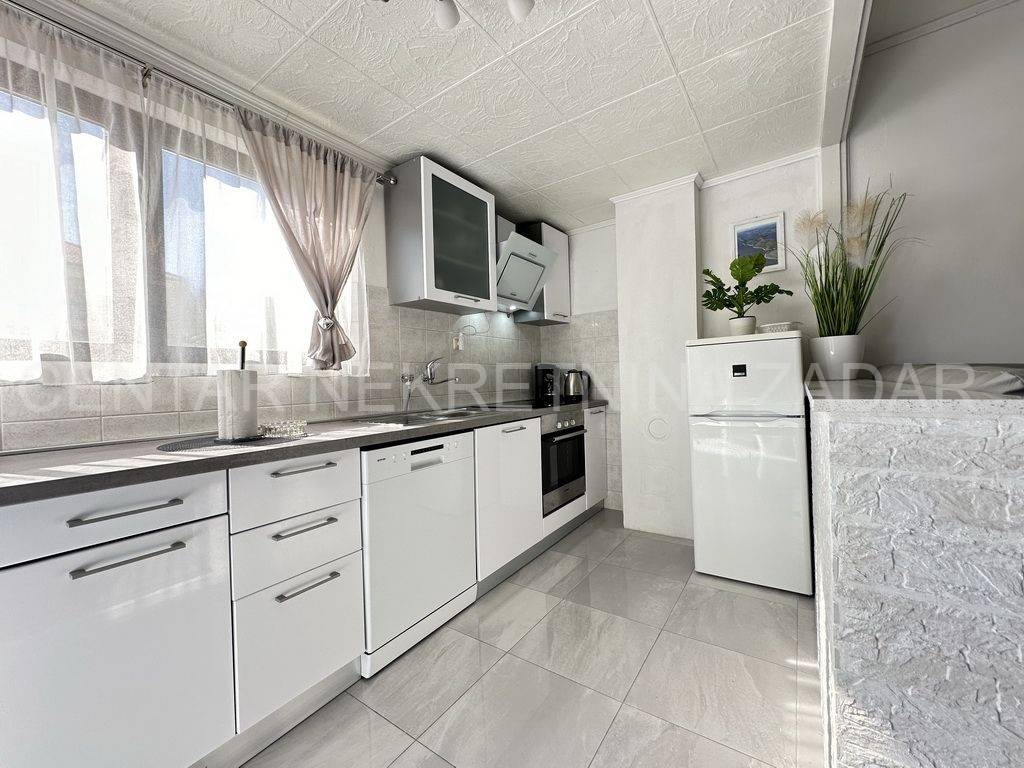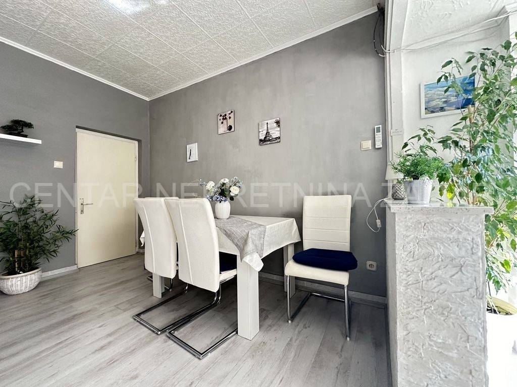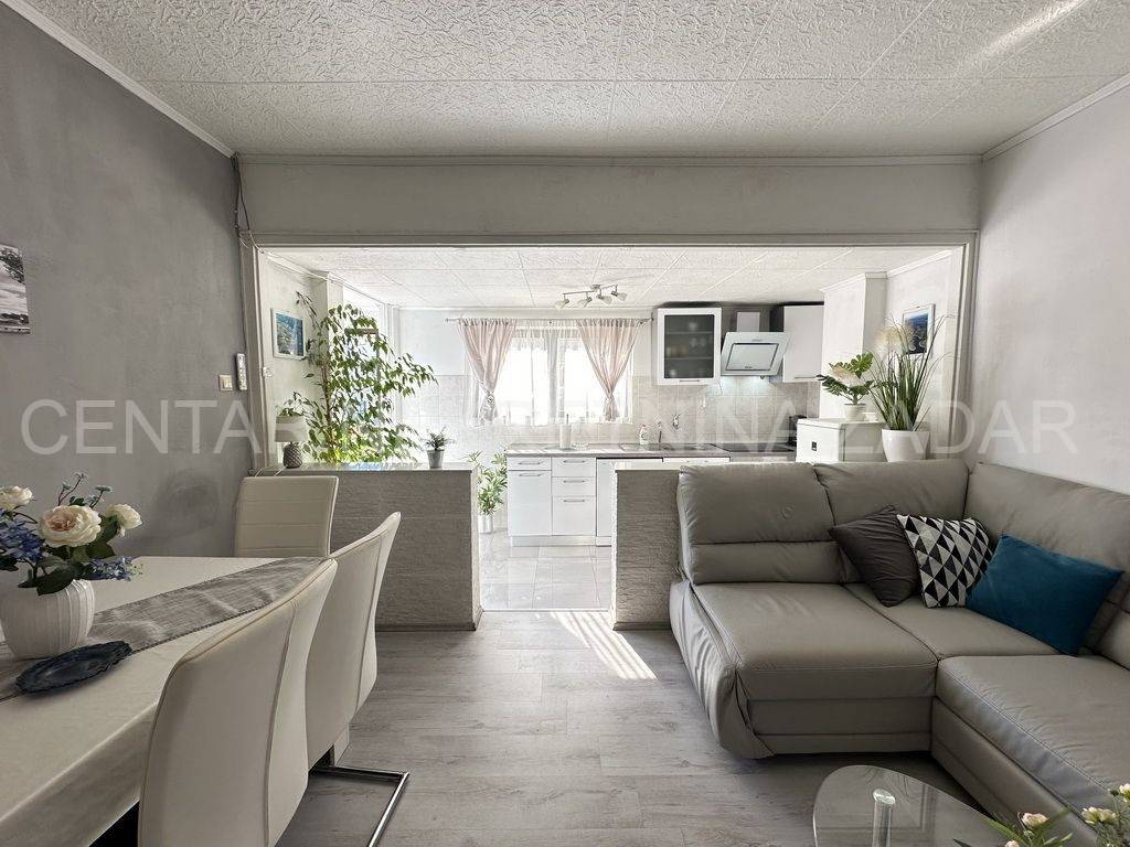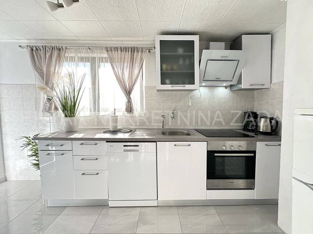 Ekskluzivno u našoj ponudi! Prodaje se dvosoban stan smješten na katu kuće u mjestu Sali na Dugom otoku. Stan je površine 54 m2, a sastoji se od terase (koja ima djelomičan pogled na more), manjeg predsoblja, kuhinje, blagovaonice i dnevnog boravka otvorenog koncepta, dvije spavaće sobe, hodnika i dvije kupaonice. Stan se prodaje namješten i uređen, spreman za useljenje i korištenje. Stolarija je PVC, a grijanje i hlađenje je na klima uređaj. Stanuima odvojen ulaz, a pristupa mu se preko pripadajućeg stubišta. Okućnica je uređena različitim biljem i mediteranskim voćkama. Do mora je potrebno cca 3 minute hoda, a do centra cca 7 minuta. Javni parking je dostupan u blizini kuće.