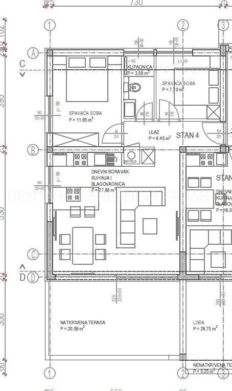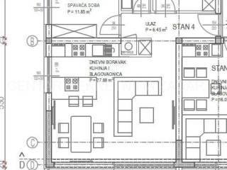 Luxury new building with elevator, 2nd row from the sea in Zaton. The building consists of a ground floor and two floors and a roof terrace.The apartment marked S4 is located on the 1st floor. It contains a hallway, two bedrooms, a bathroom, a kitchen with a dining room and a living room, and a partially covered terrace. The total net area of the apartment is 67.75 m2. This apartment also includes two parking spaces on the property of the building. An excellent location for vacation, the distance to the sea is only about 20 meters. All apartments have a beautiful direct view of the sea.Extremely high-quality construction by a reliable investor. Aluminum carpentry with mosquito nets, electric blinds and blinds on glass walls (Schüco), elevator (Schindler), underfloor heating with a heat pump and air conditioning (Mitsubishi), first-class ceramics with a large profile and high-quality parquet. The expected completion of the project is June 2023.Zaton is a small tourist town located in the bay of the same name in the Zadar channel. It represents a unique combination of Dalmatian architecture, a pleasant Mediterranean climate, preserved nature, a rich cultural and historical heritage and that lively tourist everyday life. An exceptional location for a perfect summer vacation.