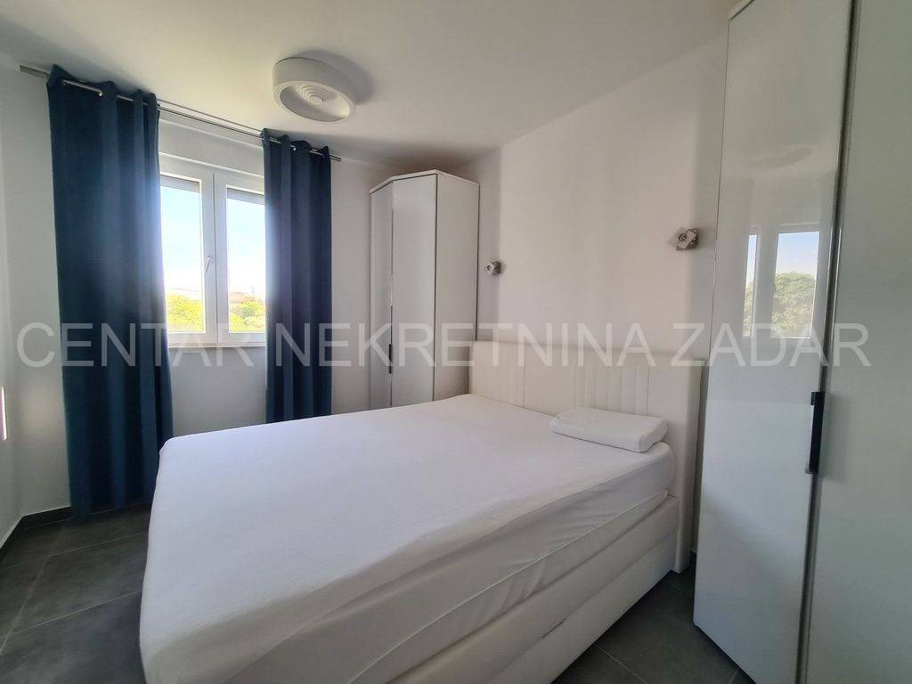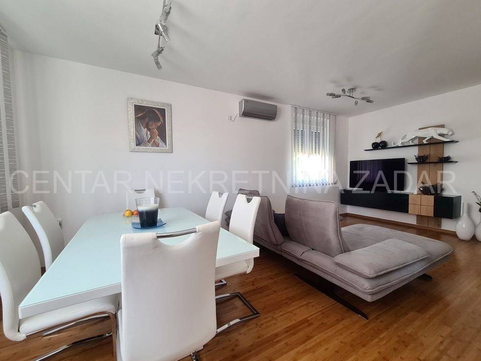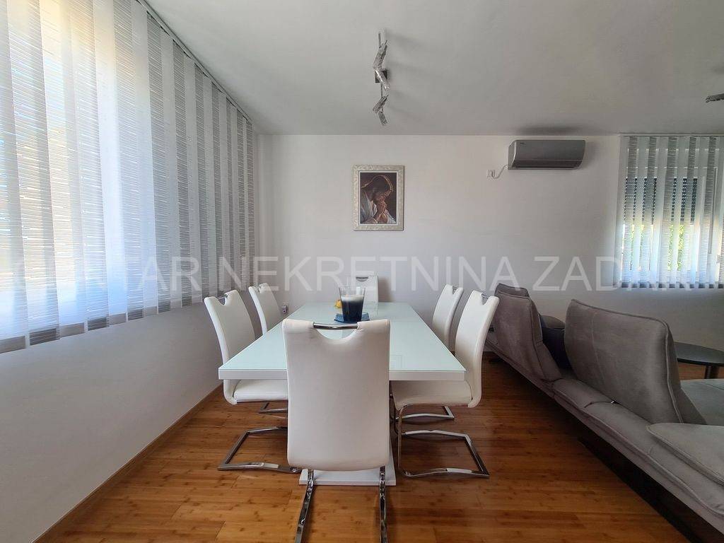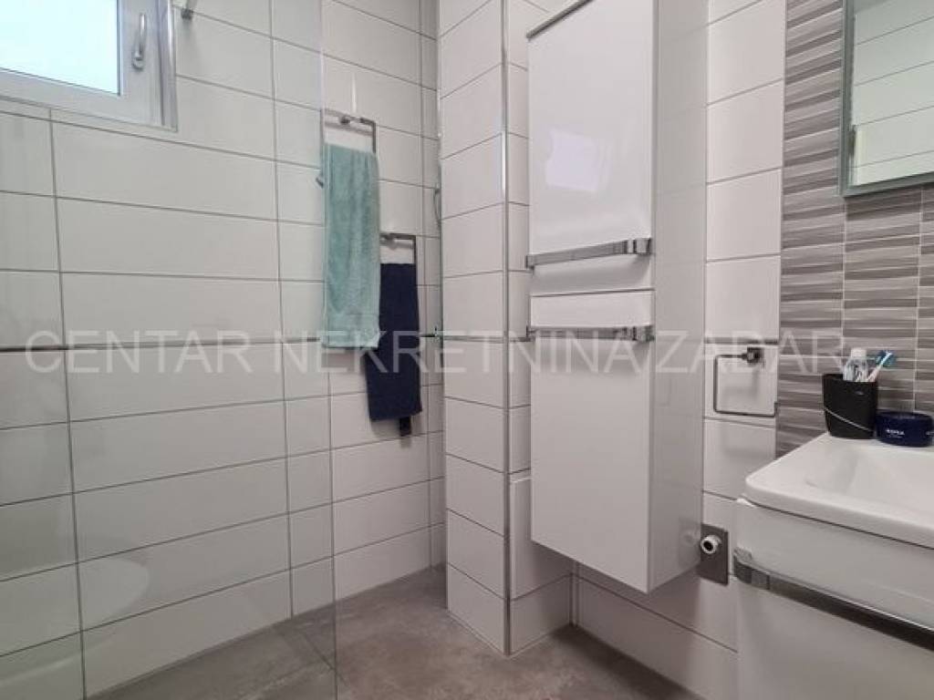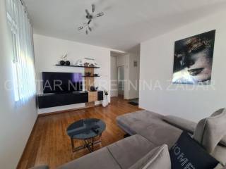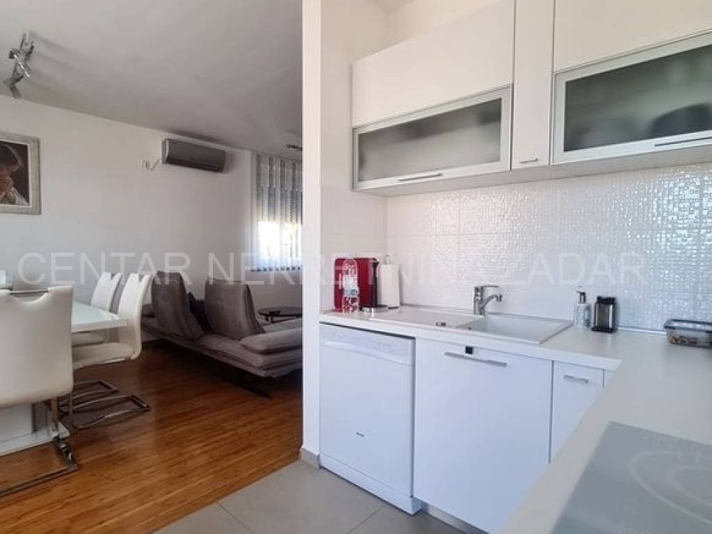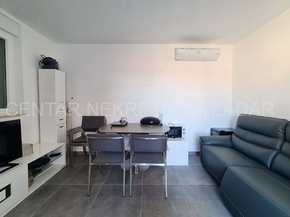 A three bedroom apartment is for sale in an excellent location in Turanj, not far from Sv. Filip i Jakov and Biograd na Moru. The apartment has two floors and is located on the first and second floor of the building. The ground floor and first floor of the building were built in 2010, and then in 2020, after a permit was requested, the second floor was upgraded. The apartment has about 152 m2 of floor space, and has an entrance on the ground floor of the building, which is separate from the other residential units (which means that it also has a staircase that leads from the ground floor to the first floor). The apartment therefore consists of a staircase on the ground floor; a hallway, a bathroom, two bedrooms, a kitchen with a dining room and a living room and a terrace on the first floor and another bathroom, a bedroom, a living room and a large roof terrace on the second floor. The apartment is furnished and equipped with high-quality furniture and appliances and is for saleas such. On the roof terrace there is also a summer kitchen and a jacuzzi. There is a beautiful sea view from the roof terrace as well as from the apartment. Heating and cooling is provided with air conditioning, but a chimney was installed in the living room, so there is a possibility of heating with wood. In the courtyard of the building there is a parking lot (of 37 m2) belonging to the apartment where it is possible to park up to three cars.