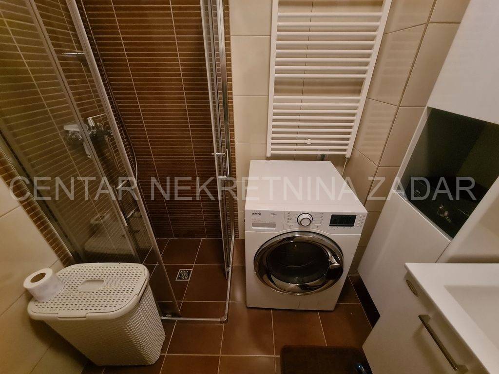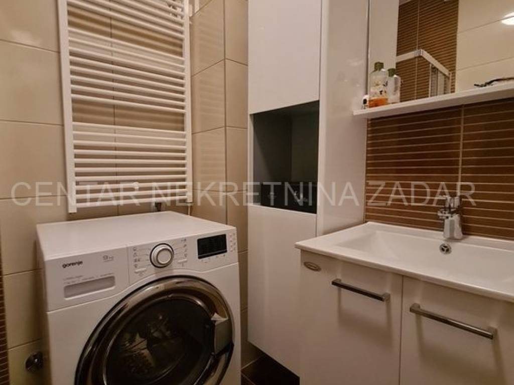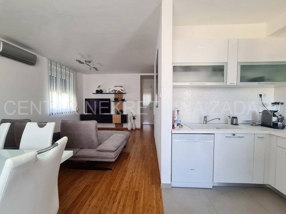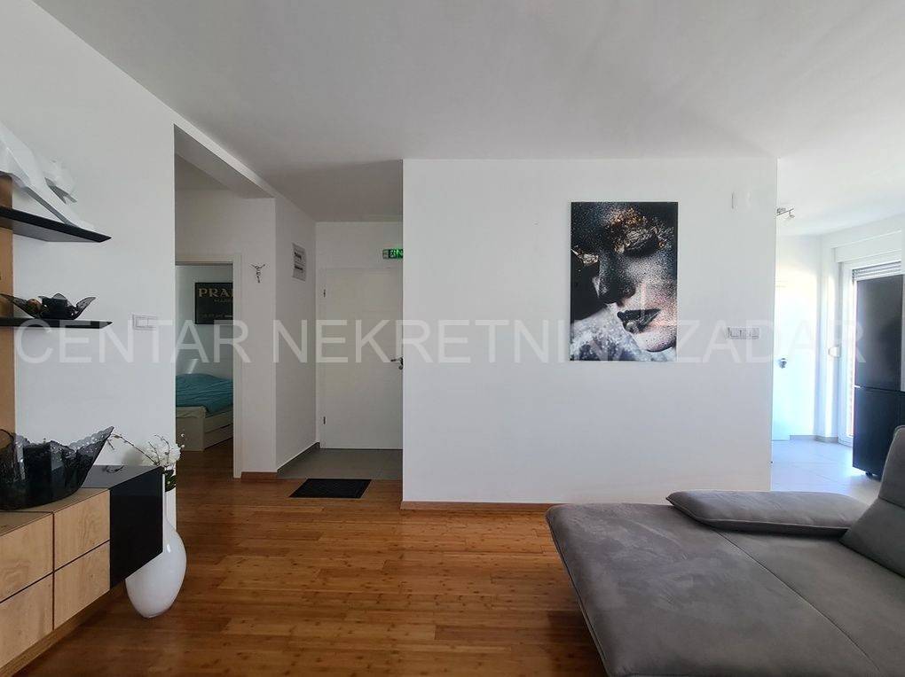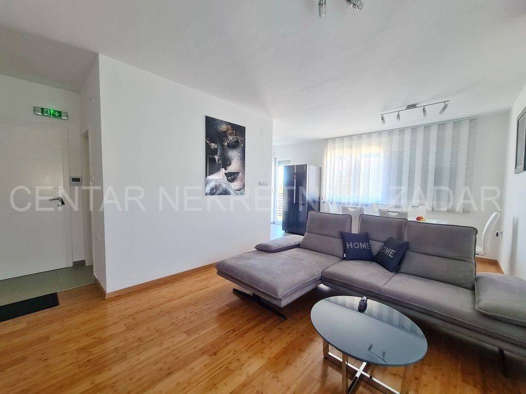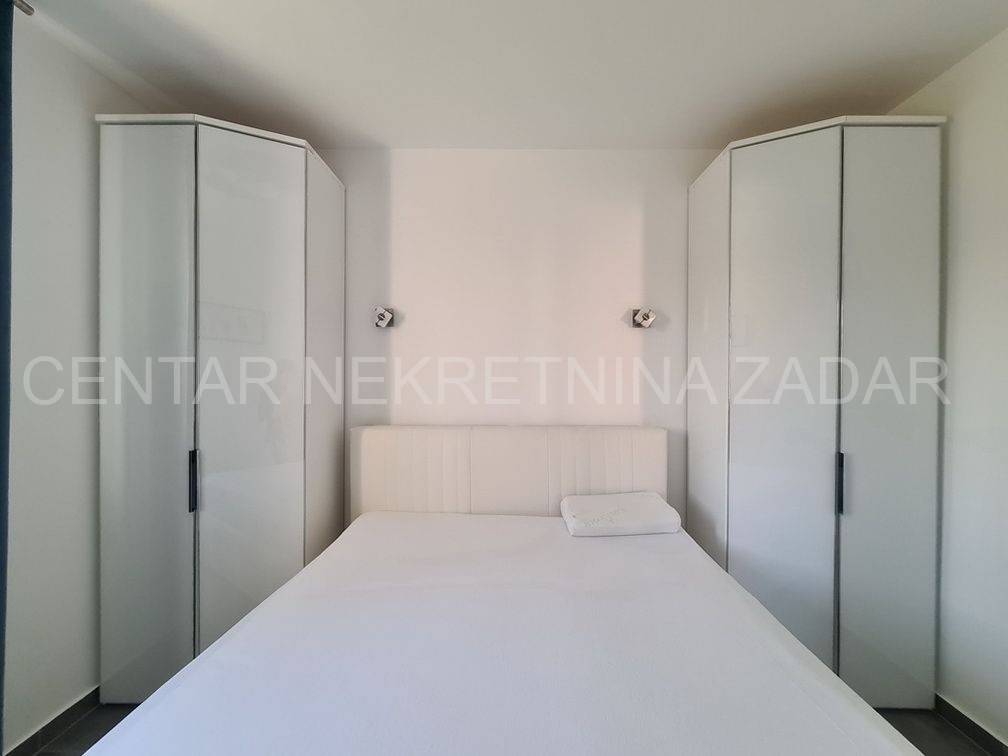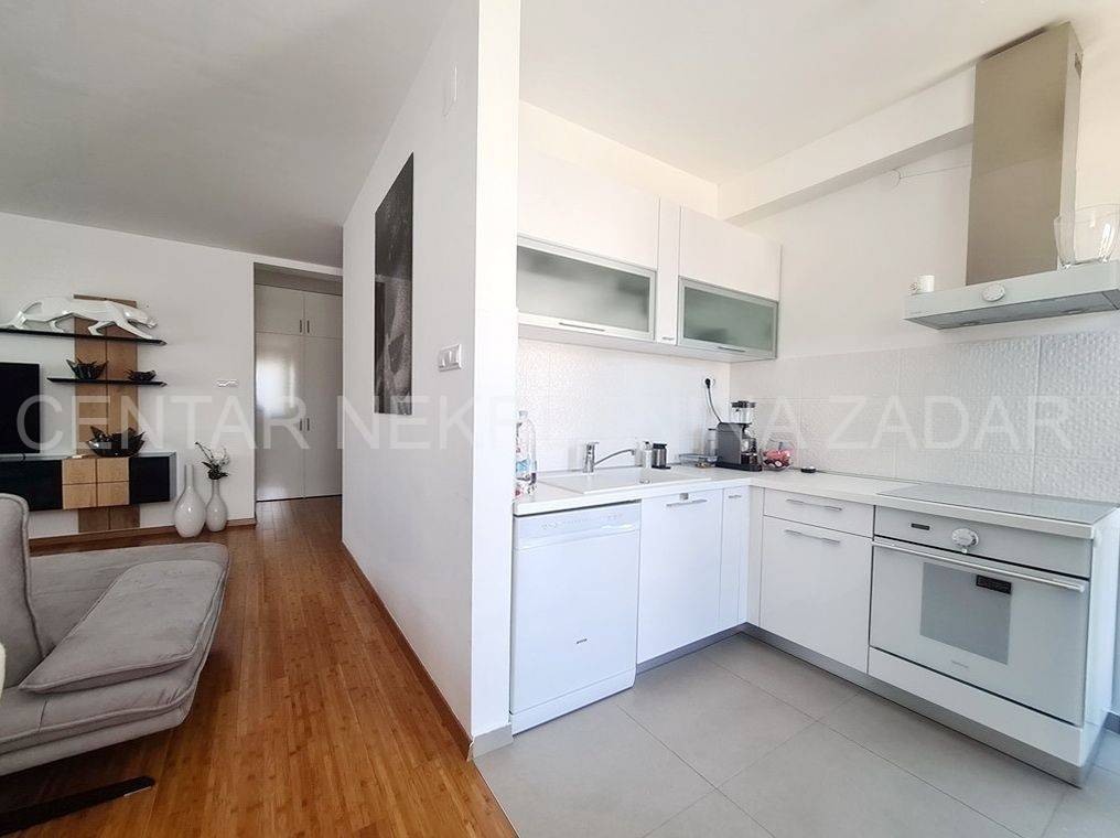A three bedroom apartment is for sale in an excellent location in Turanj, not far from Sv. Filip i Jakov and Biograd na Moru. The apartment has two floors and is located on the first and second floor of the building. The ground floor and first floor of the building were built in 2010, and then in 2020, after a permit was requested, the second floor was upgraded. The apartment has about 152 m2 of floor space, and has an entrance on the ground floor of the building, which is separate from the other residential units (which means that it also has a staircase that leads from the ground floor to the first floor). The apartment therefore consists of a staircase on the ground floor; a hallway, a bathroom, two bedrooms, a kitchen with a dining room and a living room and a terrace on the first floor and another bathroom, a bedroom, a living room and a large roof terrace on the second floor. The apartment is furnished and equipped with high-quality furniture and appliances and is for saleas such. On the roof terrace there is also a summer kitchen and a jacuzzi. There is a beautiful sea view from the roof terrace as well as from the apartment. Heating and cooling is provided with air conditioning, but a chimney was installed in the living room, so there is a possibility of heating with wood. In the courtyard of the building there is a parking lot (of 37 m2) belonging to the apartment where it is possible to park up to three cars.