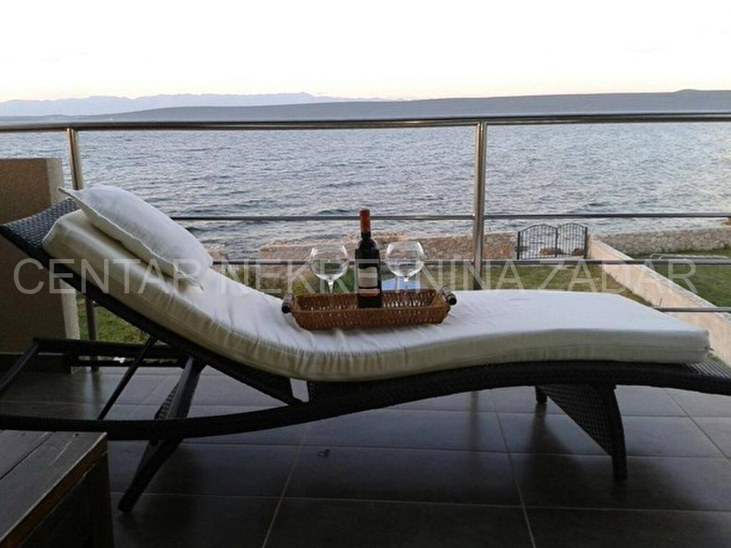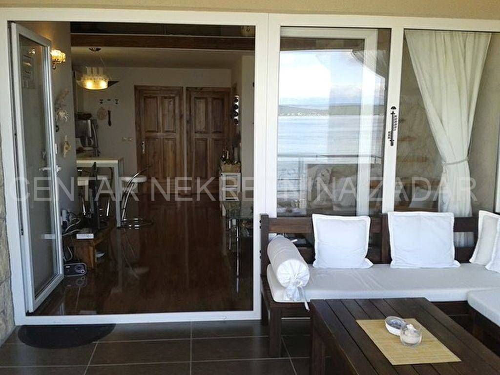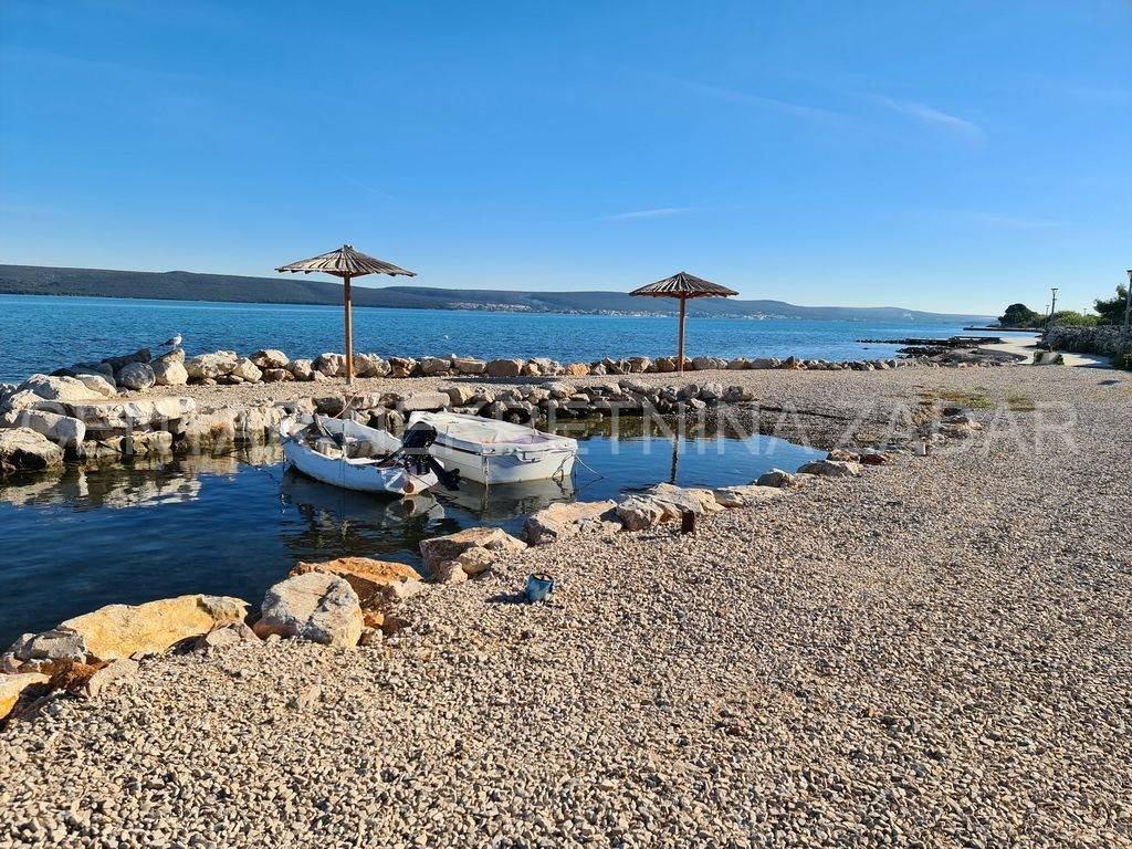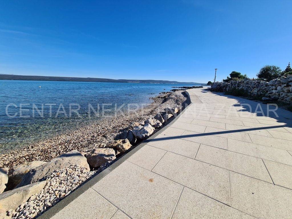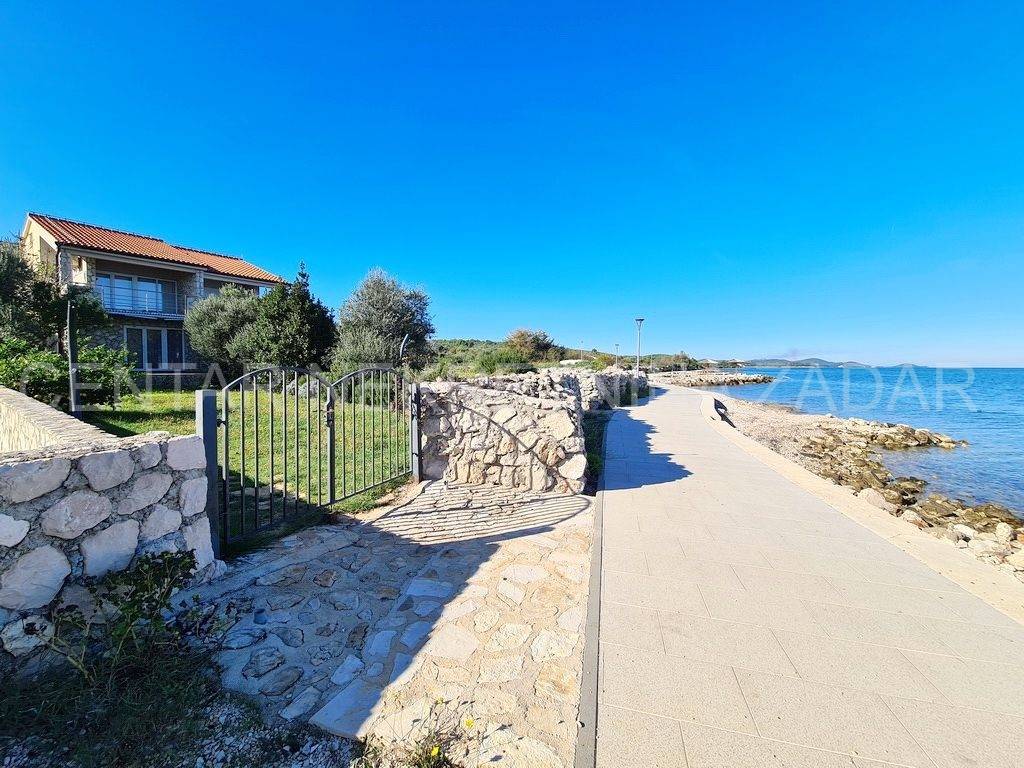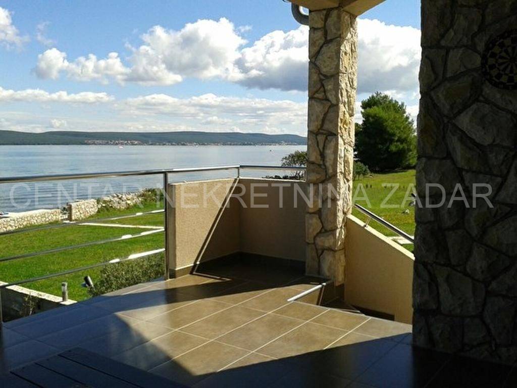 For sale there is half of the house consisting of two apartments - on the ground floor and on the first floor. The apartment on the ground floor consists of a kitchen with a living room, two bedrooms, a bathroom and a toilet. The living room is separated by a glass wall from the terrace of almost 20 m, where the landscaped garden continues and has access to the shore. An external staircase leads to the first floor where there is an apartment with a similar floor plan, which also has a gallery where there is an additional bedroom with a working area. In front of the entrance there is a large terrace with a fabulous view overlooking the sea and the surroundings of Zadar. Both of the apartments are air-conditioned, fully furnished and equipped, and are successfully rented from late spring to autumn.