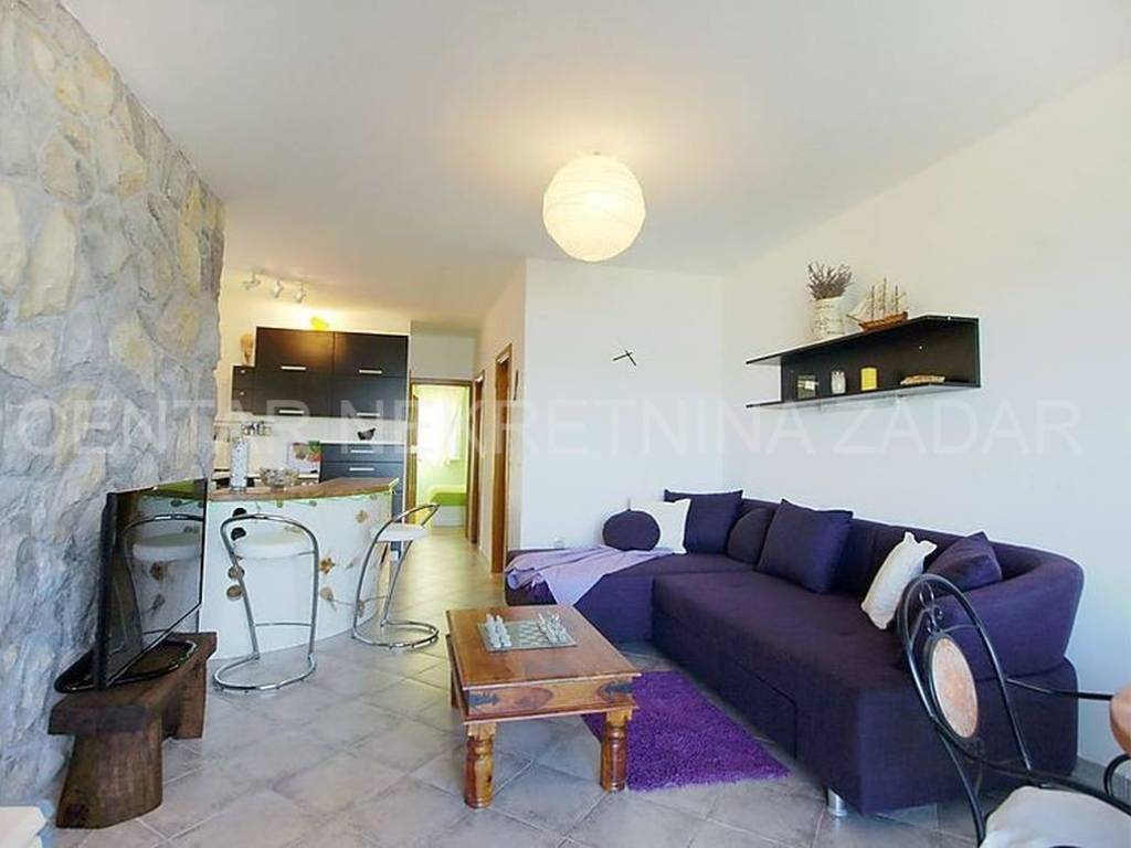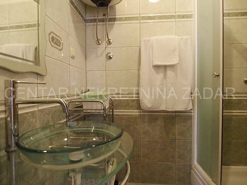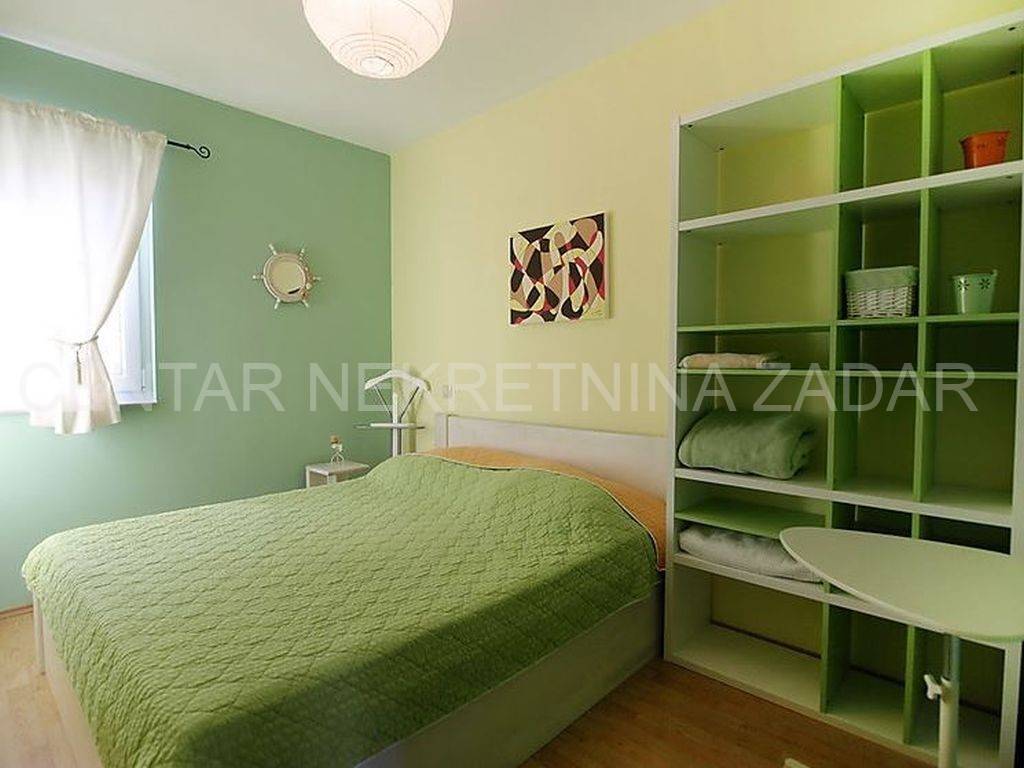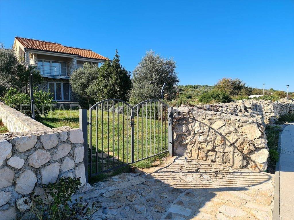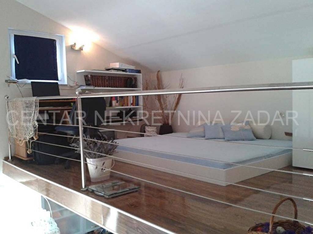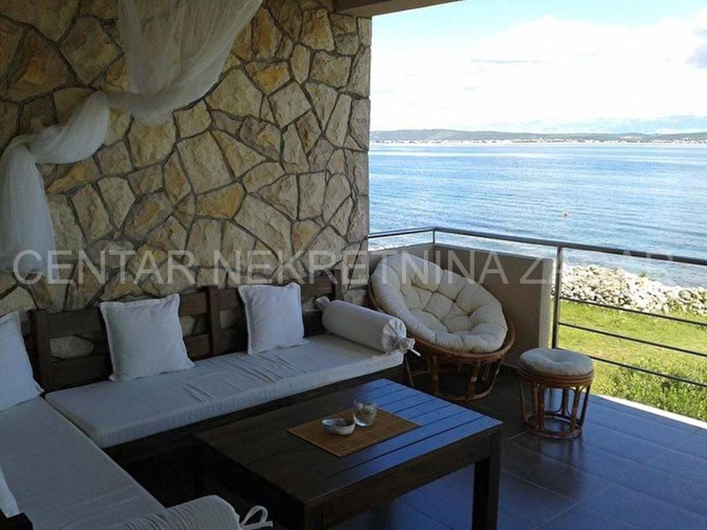 For sale there is half of the house consisting of two apartments - on the ground floor and on the first floor. The apartment on the ground floor consists of a kitchen with a living room, two bedrooms, a bathroom and a toilet. The living room is separated by a glass wall from the terrace of almost 20 m, where the landscaped garden continues and has access to the shore. An external staircase leads to the first floor where there is an apartment with a similar floor plan, which also has a gallery where there is an additional bedroom with a working area. In front of the entrance there is a large terrace with a fabulous view overlooking the sea and the surroundings of Zadar. Both of the apartments are air-conditioned, fully furnished and equipped, and are successfully rented from late spring to autumn.