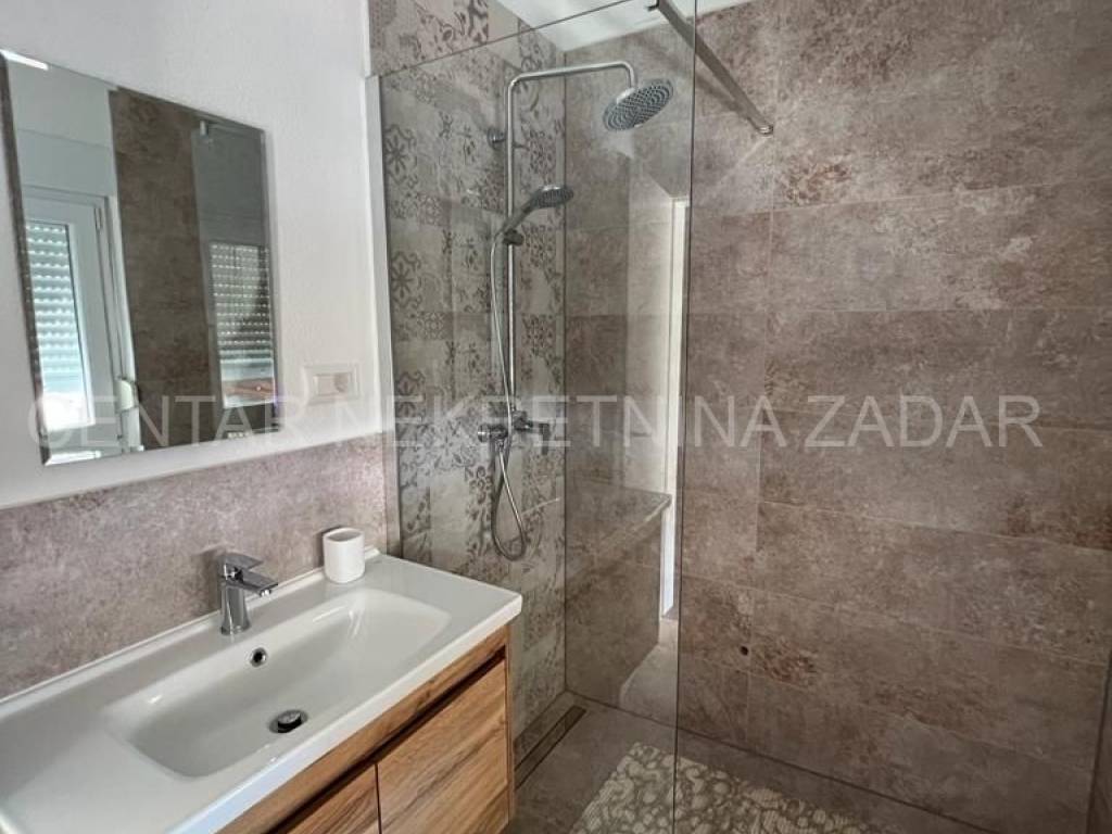 The house with two residential units consists of a ground floor and a first floor, and there is a two-room apartment on each floor. The apartments consist of a hallway, bathroom, two bedrooms, kitchen, dining room and living room with access to a covered terrace. There is also a small storage room under the staircase. The total area of the ground floor is 86.40 m2. An external staircase connects the ground floor with the first floor, which has the same layout as the ground floor. The total area of the first floor is 88 m2. The apartments are in excellent condition, and all bathrooms were renovated in 2022. The house is oriented southwest, and is located only 180 meters from the sea. It is sold fully furnished. It has thermal insulation, and the exterior carpentry is made of PVC material with mosquito nets.Behind this house there is a covered area with an outdoor grill of 15 m2.The second house is located at the back of the property, and contains a two-room apartment of 60 m2, completely newly furnished and equipped in 2022, with a living room and dining room, two bedrooms and a bathroom. The houses can function together, but also separately, because there is access to the property from two sides. The land has a total area of 762 m2.The seller also owns a building plot with a total area of 1303 m2, on which it is possible to build new residential buildings, and could be bought at the price of 500.000.Sveti Petar na Moru is a small tourist town located in the heart of Dalmatia near Zadar. The place is known for the former summer houses and gardens of Zadar nobles. What makes it attractive, among other things, is the possibility of engaging in various sports activities on land and at sea. In the immediate vicinity is Lake Vrana, the largest lake in Croatia, rich in freshwater fish. It is only 15 minutes away from Zadar and Zemunik airport.
