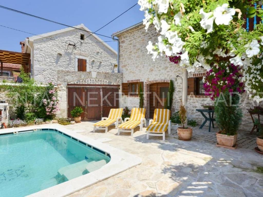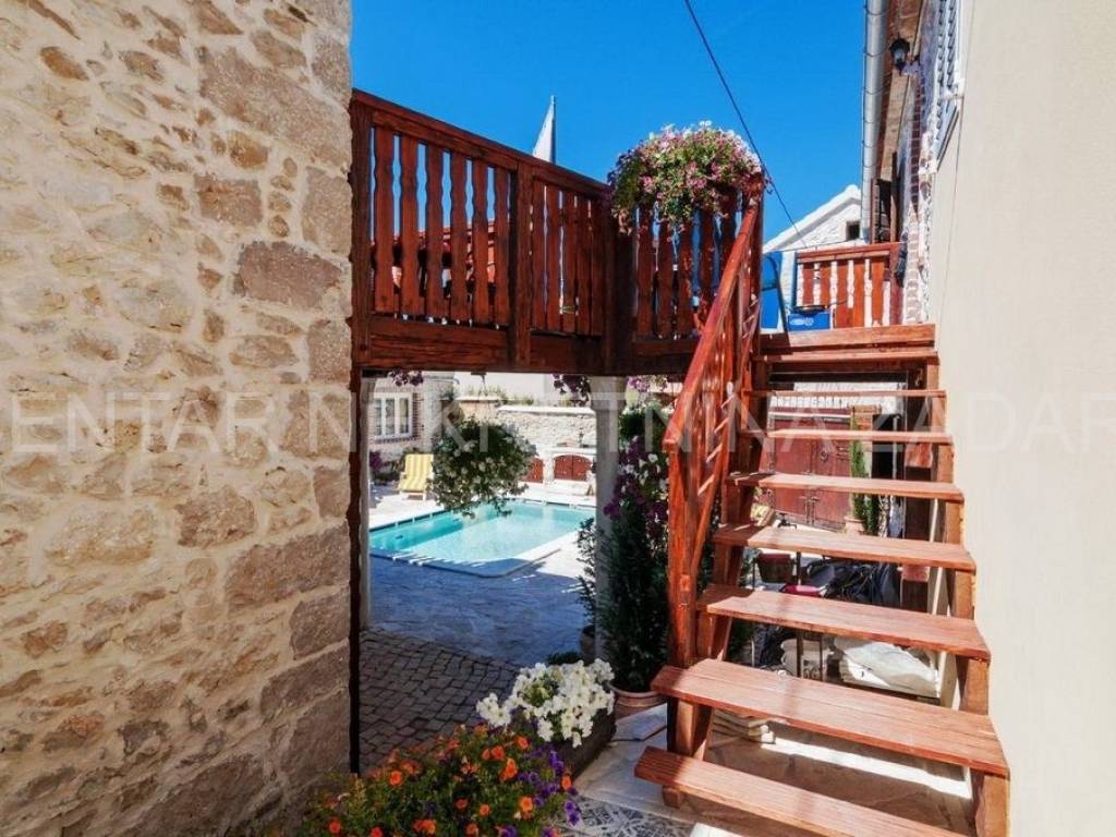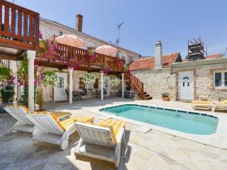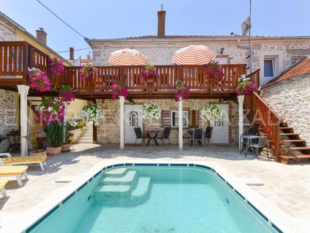 There are two semi-detached stone houses in Arbanasi, with a large yard and a swimming pool. The old houses were completely renovated in 2016 and are decorated as a tourist facility. On the ground floor of the right house there is a large room for friendly gatherings, and on the first floor there is a one bedroom apartment with a small terrace in front of the entrance. In the left house there are fivestudio apartments - two on the ground floor and three on the first floor, which have the common terrace. All apartments are air-conditioned, fully equipped and are have been successfully rented. It is also possible to arrange two smaller apartments. In the yard there is a barbecue and a swimming pool. The houses are only a few minutes walk from the bus station, near the sea and the beach, and the city center can be reached by foot in 20 minutes. For visiting please call +385 99 325 2763.