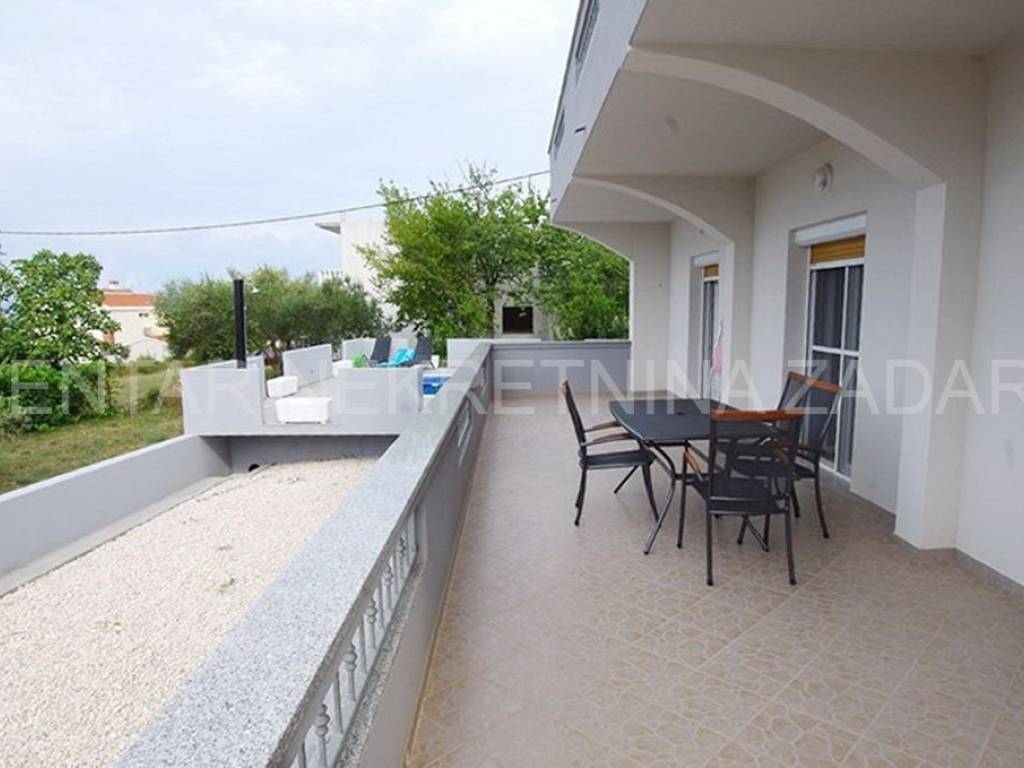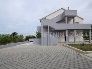 The rooms have access to a spacious balcony that extends along the entire house and has a sea view, and in front of the entrance there is a large covered terrace. On the first floor there is an apartment with the same floor plan, and in the atticthere is an apartment with a floor area of 125.98 m, which consists of a living room with kitchen, a hallway, one spacious bedroom, a bathroom and a terrace. All terraces offer sea views. All apartments are air conditioned and furished. There is also a chimney in the house.