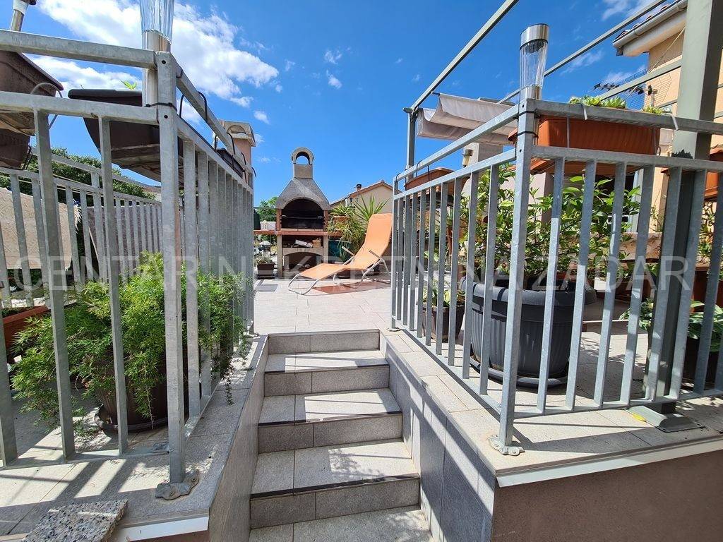 On the ground floor there is an apartment consisting of a kitchen with a living room, two spacious bedrooms (each about 14 m), a bathroom and a hallway, while the living room has access to a 10 m terrace. On the ground floor there is also large covered area with a summer kitchen and brick fireplace, a storage room, a bathroom and two large rooms. There are two residential units on the first floor - one is an apartment with one bedroom and large terrace, and the other consists of a kitchen with a dining room and a living room, five rooms, a corridor and a glazed terrace of 10.5 m. The apartments are fully furnished and equipped. They have been successfully rented out for several years, so buying this house is an opportunity to continue an established business.