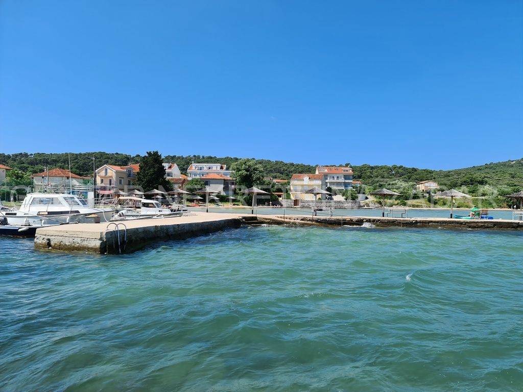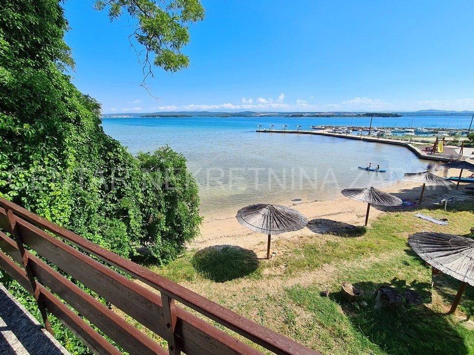 A house for sale located almost on the sandy beach on the island of Pašman. It consists of a ground floor and the first floor, with one apartment on each floor. On the ground floor there are a veranda, a kitchen with a dining area and a living room, two bedrooms, a bathroom and a storage room. An external staircase leads to the first floor where there is an apartment consisting of a hallway, a kitchen with a dining area, three bedrooms, a bathroom and a terrace in front of the entrance door with an unique view overlooking the beach, sea and the islands. There is a large cellar under the house. The yard is fenced and full of greenery, with access to the coast. Parking is possible less than a hundred meters from the house. The house is located in an unique position next to the sea and as such is interesting for adaptation according to the buyer's wishes. For viewing, please call 00385 99 325 3763.