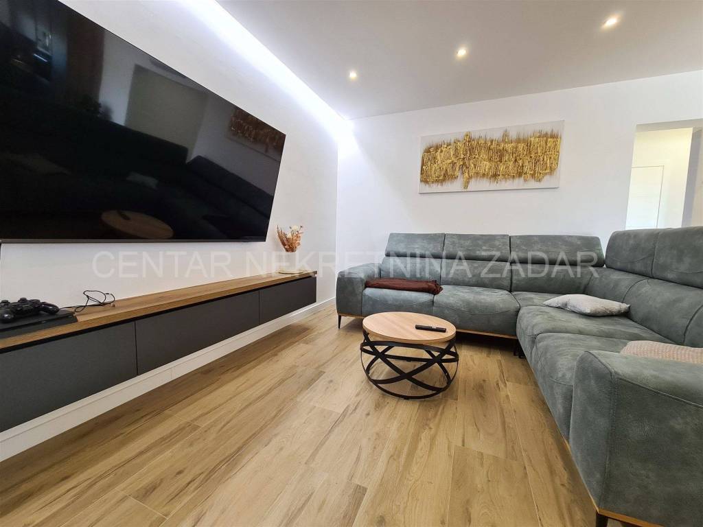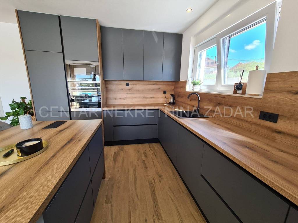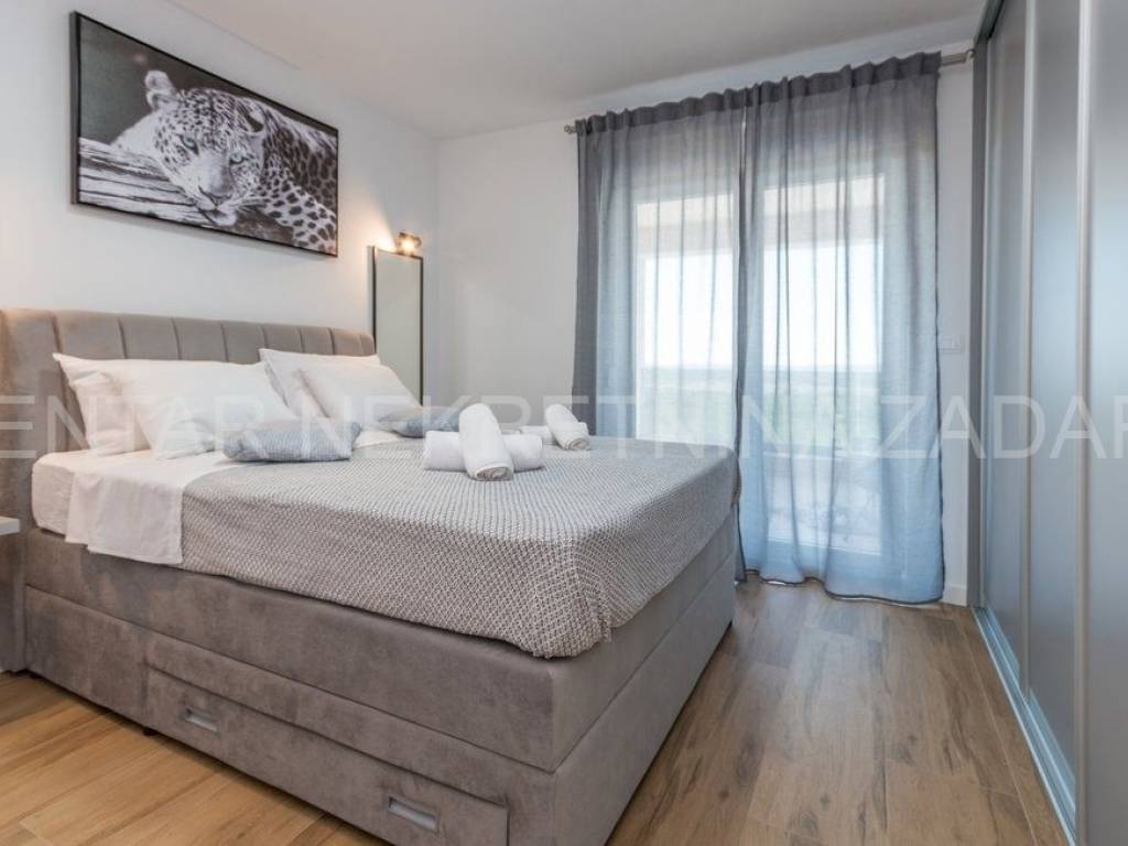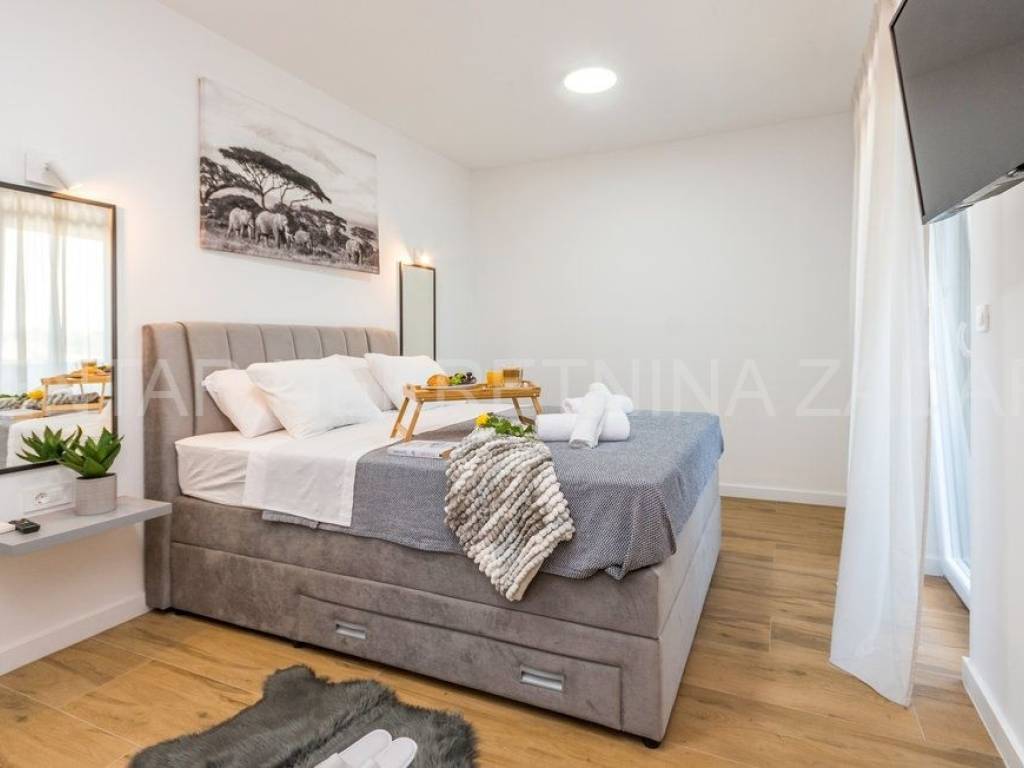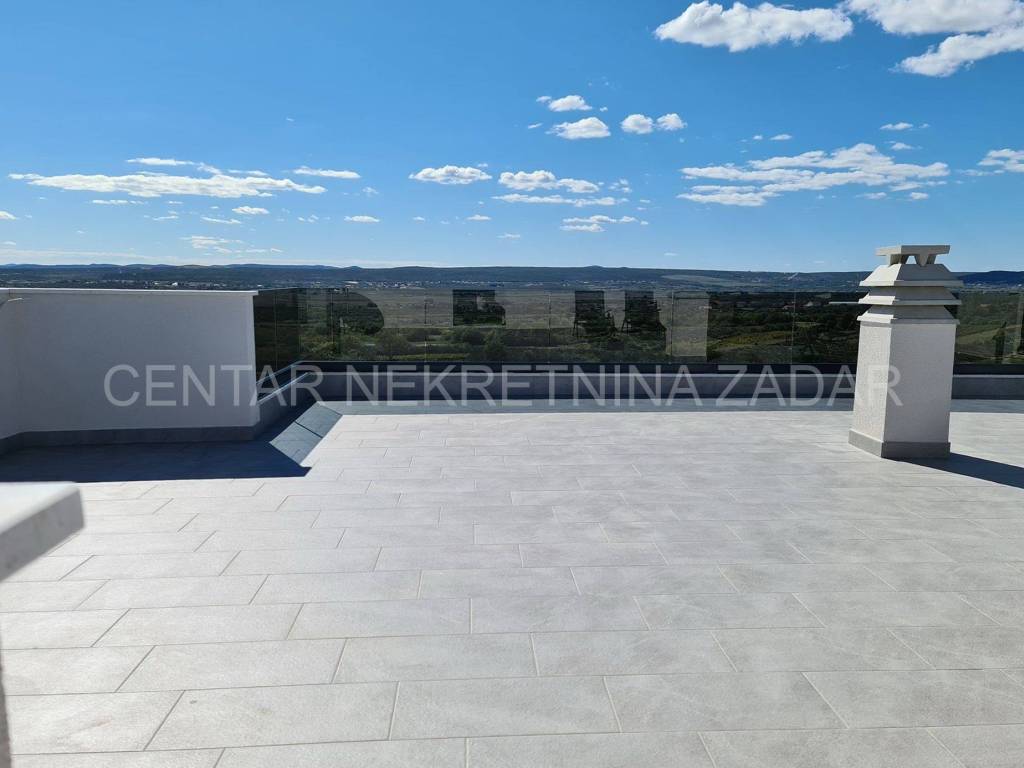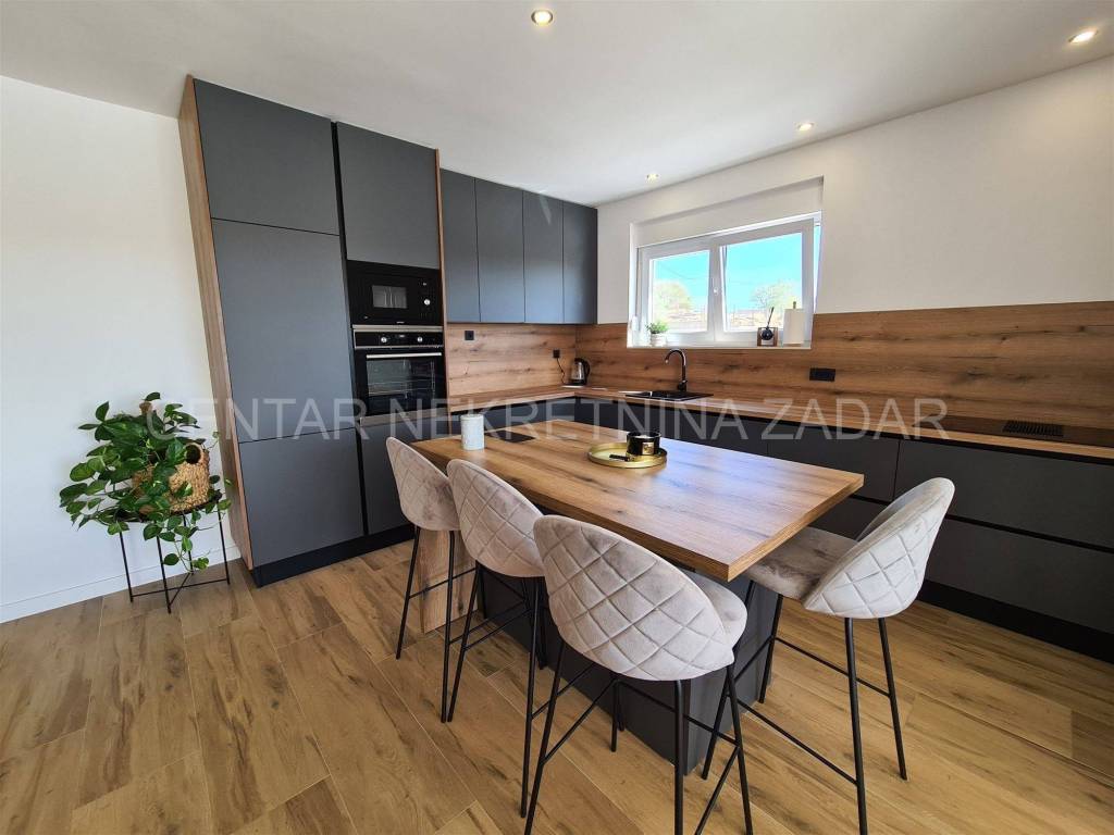 A newly built villa with a swimming pool in the vicinity of Biograd is for sale. It was built on a plot of land of 1020 m, while the net residential area of the building of 268 m is divided into basement, ground floor, first floor and flat roof.