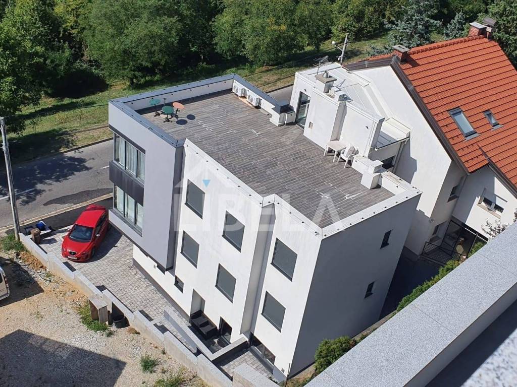 Stan se sastoji od ulaznog prostora, open-space dnevnog boravka s kuhinjom i blagovaonom s velikim staklenim stijenama koje omogućuju panoramski pogled na okolinu. Tu su još i WC za goste, dvije dječje spavaće sobe, kupaonica te master soba s vlastitom kupaonicom. Dodatno, stan ima veliku terasu od 100 m na krovu, koja pruža idealno mjesto za opuštanje i uživanje u vanjskim aktivnostima.