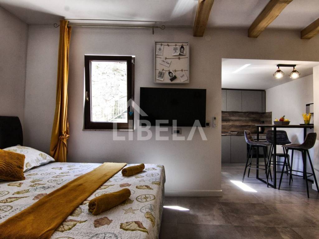Prodaje se potpuno obnovljenaluksuzna kuća u centru Turnjana samo 30m od mora!!!Kuća seu naravi sastoji od dva ekskluzivno namještena aprtmana sa zasebnim ulazima.APARTMAN na katuveličine 30m2 se sastoji od kuhinje sa blagavaonom te dnevne sobe i izlazom na terasu, kupaonice i spavaće sobe.APARTMAN u prizemlju je open space koncepcije površ. 38m2 i sastoji se od kuhinje, blagavaone i dnevnog boravkasa izlazom na terasu, spavaće sobe te kupaonice.
