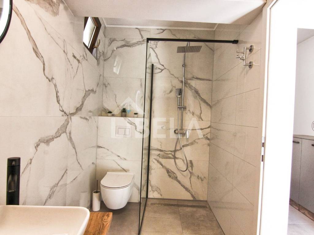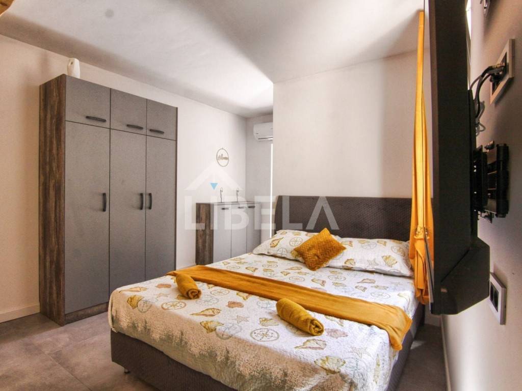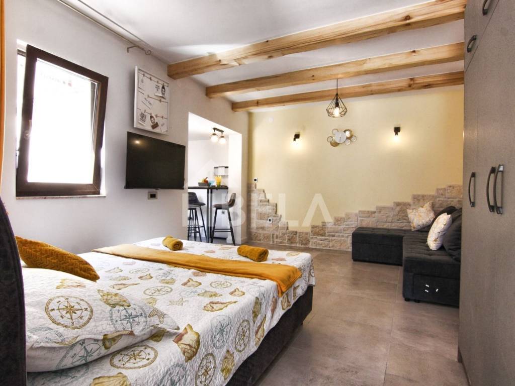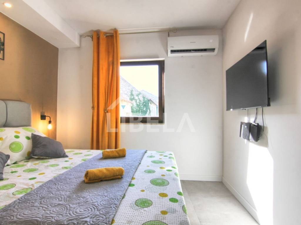 A completely renovated luxury house for sale in the center of Turanj, just 30m from the sea!!! The house consists of two exclusively furnished apartments with separate entrances. APARTMENT 1 on the ground floor, size 30m2, has an open space concept and consists of a kitchen with a dining room, a bathroom and a living room with an exit to the terrace. APARTMENT 2 on the first floor is 36m2 in size and consists of a kitchen, dining room and living room with access to the terrace, a bedroom and a bathroom.