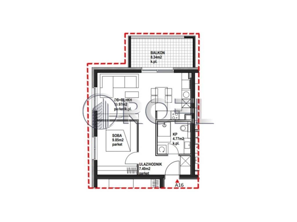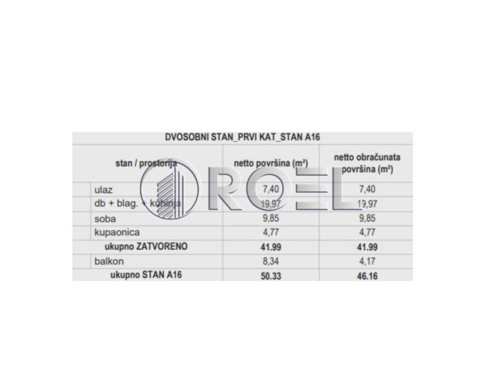 Moderan dvosobni stan ( A13) nalazi se na prvom katu novogradnje od ukupno tri kata u Stenjevcu, NKP 52,91 m2. Sastoji se od ulaza, dnevnog boravka s kuhinjom i blagovaonom s izlazom na balkon veličine, spavaće sobe te kupaonice s wc-om. Uz stan dolazi ostava površine 4,19m2. Podje obložen parketom i keramikom. U stanu je podno grijanje.Uz stan jdolazi spremište i garažno parking mjesto ukupne površine 17,39m2.