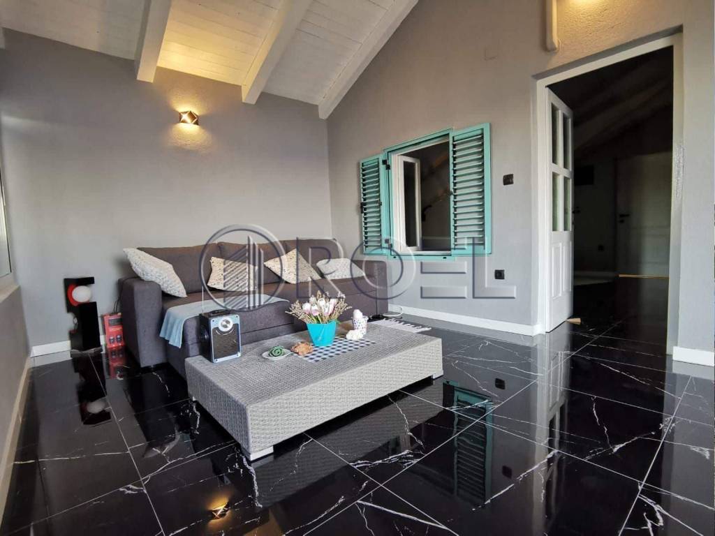 Cijela kuća je stilski uređena s pomnom biranim materijalima i namještajem kako bi pružila topao i kvalitetan prostor za život i ugodan boravak. Staklene klizne stijene (izo reflektriajuća stakla) i škure su aluminijske, a prozori drveni. U glavnim prostorijama na obje etaže proteže se gres keramika koju karakterizira čvrstoća i otpornost na mehaničko-kemijske utjecaje, a obje etaže su klimatizirane.