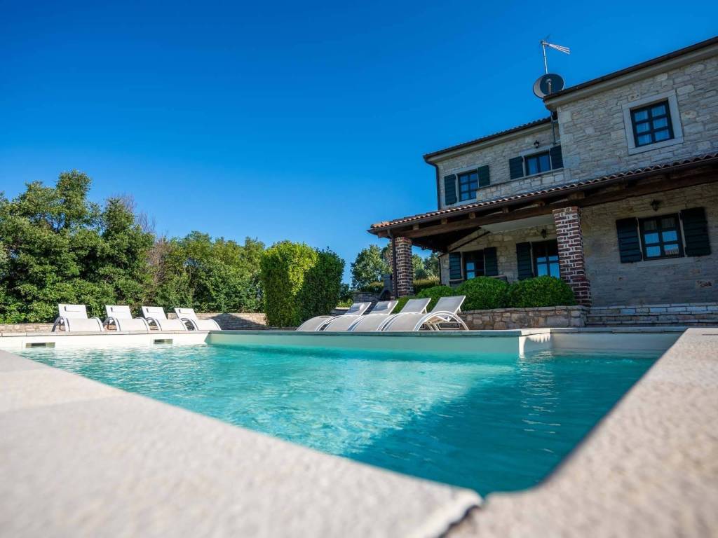 Zu verkaufen Großzügige Villa mit Pool und Panoramablick nahe PorečIm ruhigen Dorf Heraki, nur 17 Kilometer vom Zentrum von Poreč entfernt, befindet sich eine Villa mit Panoramablick auf die istrische Landschaft und das Meer.