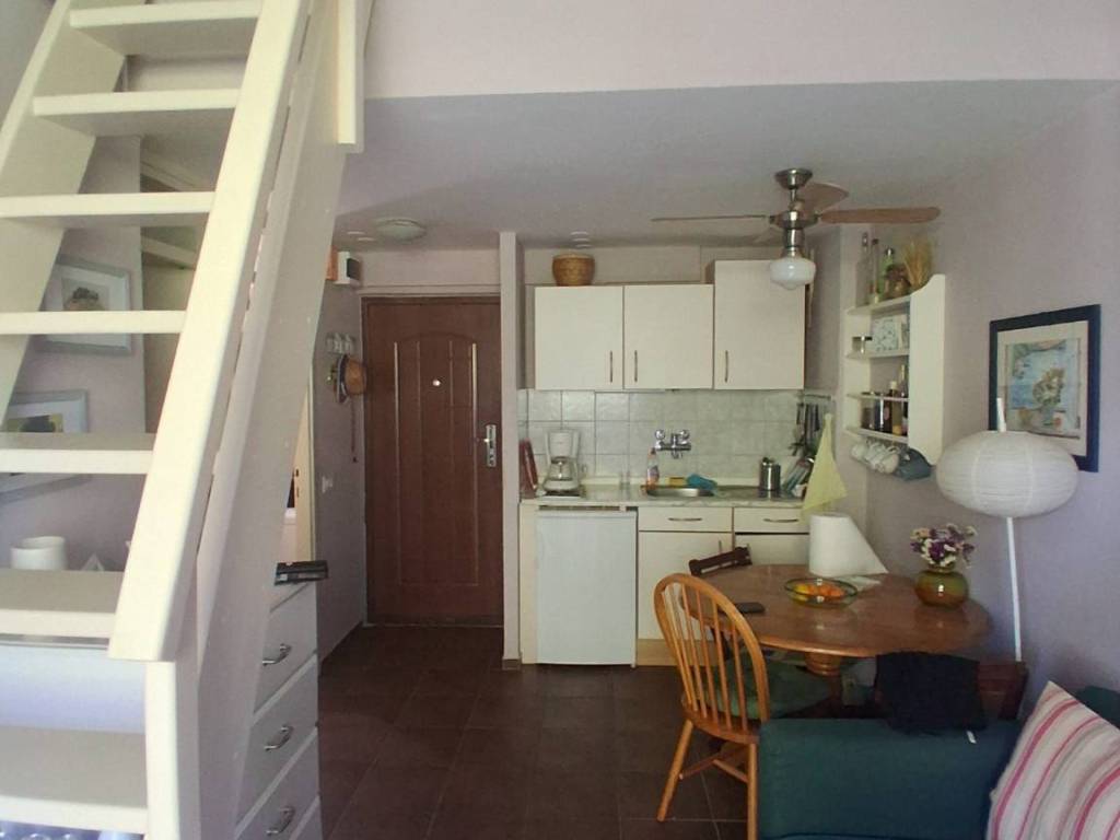 Die Wohnung besteht aus Eingangsbereich, Küche, Bad, Wohnzimmer mit Zugang zur Terrasse und zwei Schlafzimmern, eines davon auf der Galerie. Preis: 150.000 Euro