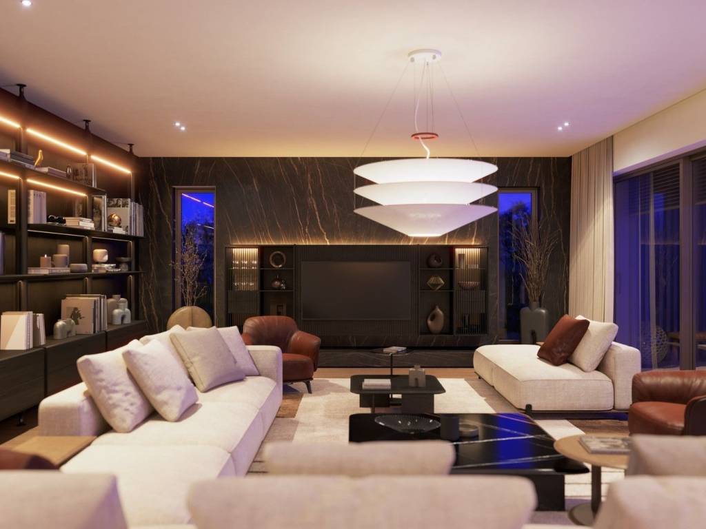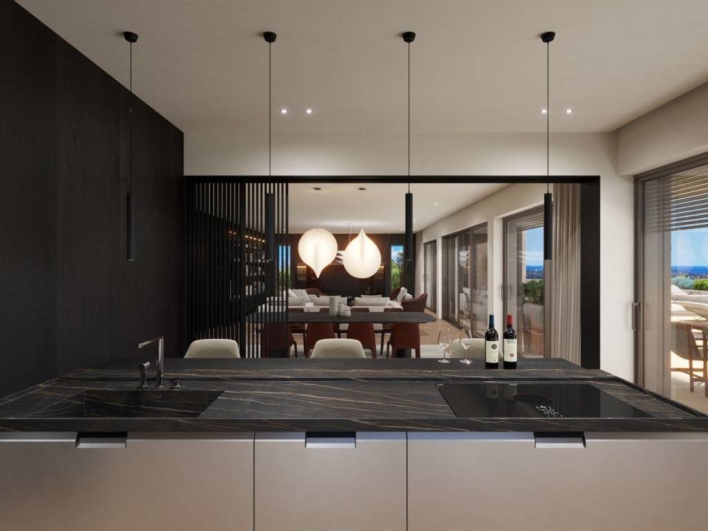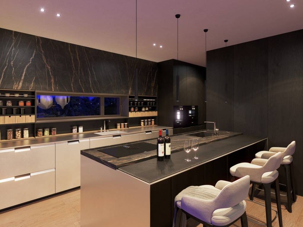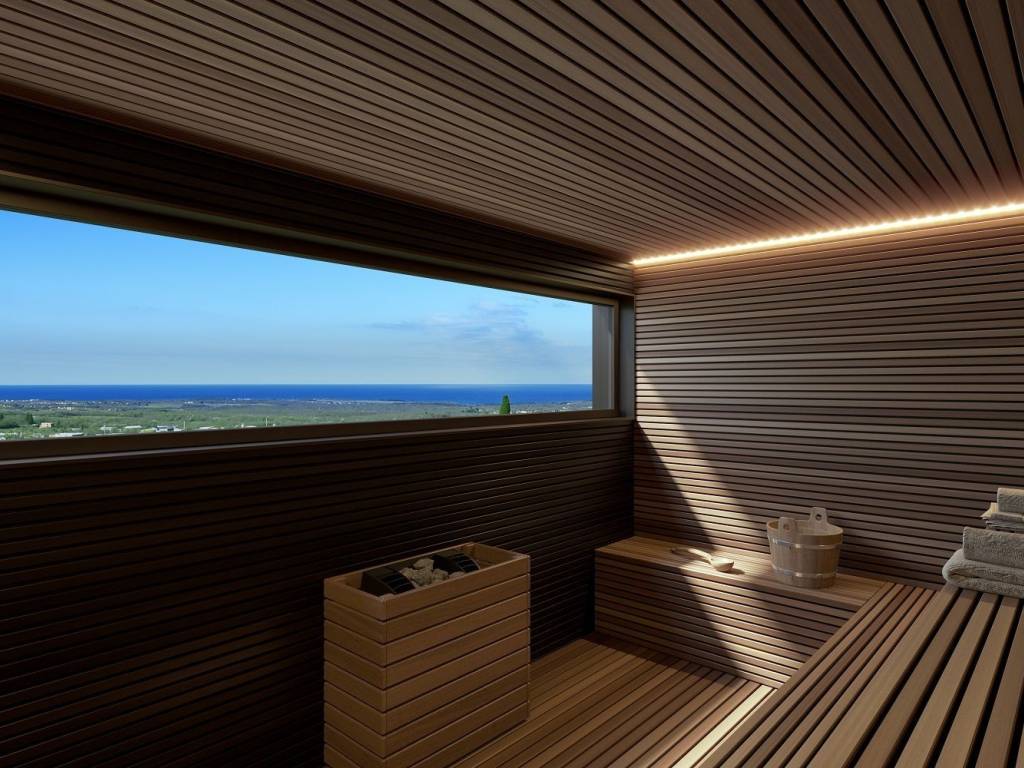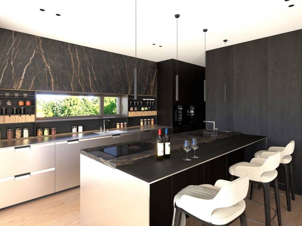 Das Erdgeschoss umfasst:Repräsentativer Eingangsbereich mit Garderobe und Gäste-WCModerne Küche mit SpeisekammerGeräumiges, offenes Ess- und WohnzimmerZugang zu einer überdachten Terrasse, einem Sonnendeck und einem 67 m großen Infinity-PoolEine zusätzliche Sauna für ein vollkommenes Entspannungserlebnis