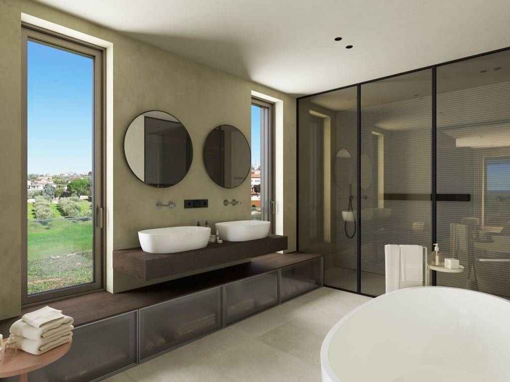Im ersten Stock befinden sich:Zwei Hauptschlafzimmer mit eigenem Bad und begehbaren KleiderschränkenZwei weitere Schlafzimmer, jeweils mit eigenem BadAlle Zimmer haben Zugang zu überdachten Terrassen mit beeindruckendem Meerblick.Als zusätzlichen Vorteil ist mit der Villa auch ein Katalog exklusiver Möbel verbunden, aus denen der Käufer in einem renommierten Luxusmöbelsalon in Poreč auswählen kann.