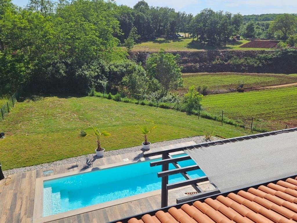 Gebiet Višnjan am Rande des Dorfes steht ein einstöckiges Haus mit einer Nettofläche von 66 m2 auf einem Grundstück von 944 m2 zum Verkauf.Die Villa besteht aus einem geräumigen Wohnzimmer mit Küche und Esszimmer, zwei Schlafzimmern, Badezimmer und Terrasse.Die Villa ist von einem großen Garten umgeben und im Garten gibt es auch einen großen Swimmingpool und einen Whirlpool.Parkplätze befinden sich neben der Villa.