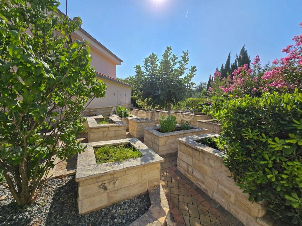 Ova nekretnina ima uredno održavanu okućnicu i vrtsa brojnim voćkama i stablima, a sve je opremljeno navodnjavanjem.