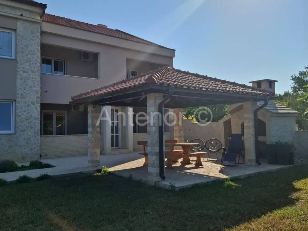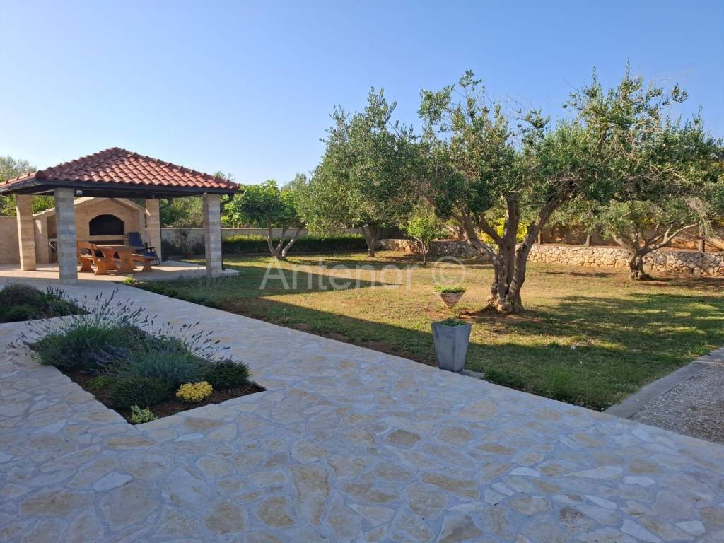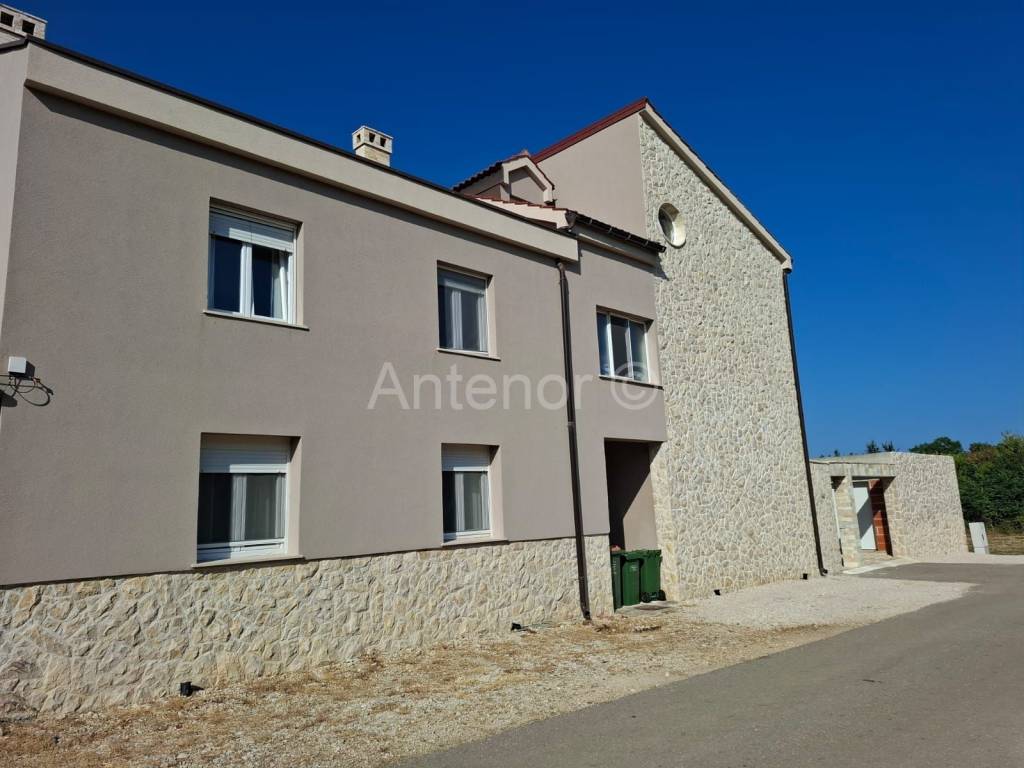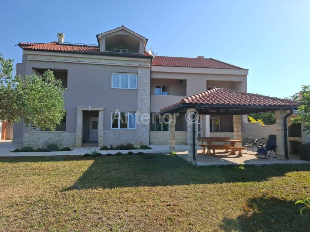 U prizemlju kuće nalaze se jedan dvosobna apartman sa kuhinjom, blagavaonom, dnevnim boravkom, kupaonicom, natkrivenom terasom, lođom i 2 spavaće sobe. U apartmanu jeprovedenopodno grijanje. U prizemlju se još nalaze dva jednosobna apartmana. Ukupna tlocrtna površina prizemlja je208,70m2.Na 1. katu površine 219,67m2 nalaze se dva jednosobna apartmana i jedan dvosobna apartman. Apartmani se sastoje od kuhinje, blagovaonice, dnevnog boravka, kupaonice, natkrivena terasa i lođe.Također, u dvosobnom apartmanu provedeno je podno grijanje.Potrkovlje je površine100,97 m2 i sastoji se od jednog apartmana sa2 spavaće sobe, dnevnim boravkom, kuhinja i blagovaonica, garderoba, 2 kupaonice i garderoba te 2 natkrivene terase. U apartmanu je uvedeno podno grijanje.Uz objekt se nalazi pomoćna građevina koja se sastoji od ljetne kuhinje i roštiljaukupne površine40,20m2. U dvorištu se nalazi i garaža.Svi apartmani su kompletno moderno namješteni. Okućnica kuće je uređena mediteranskim biljem i travnjakom. Ispred objekta se nalazi prostrano dvorište i parking za 10 vozila. Na objektu su i solarni paneli za grijanje i toplu vodu, a uziđan je i dimnjak pa postoji mogućnost ugradnje kamina.