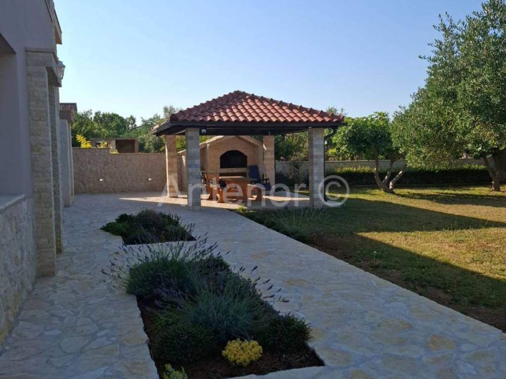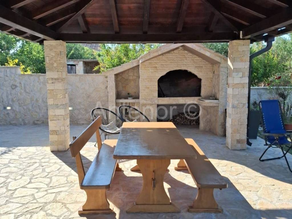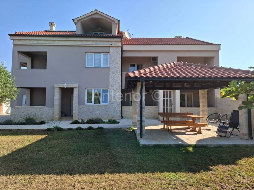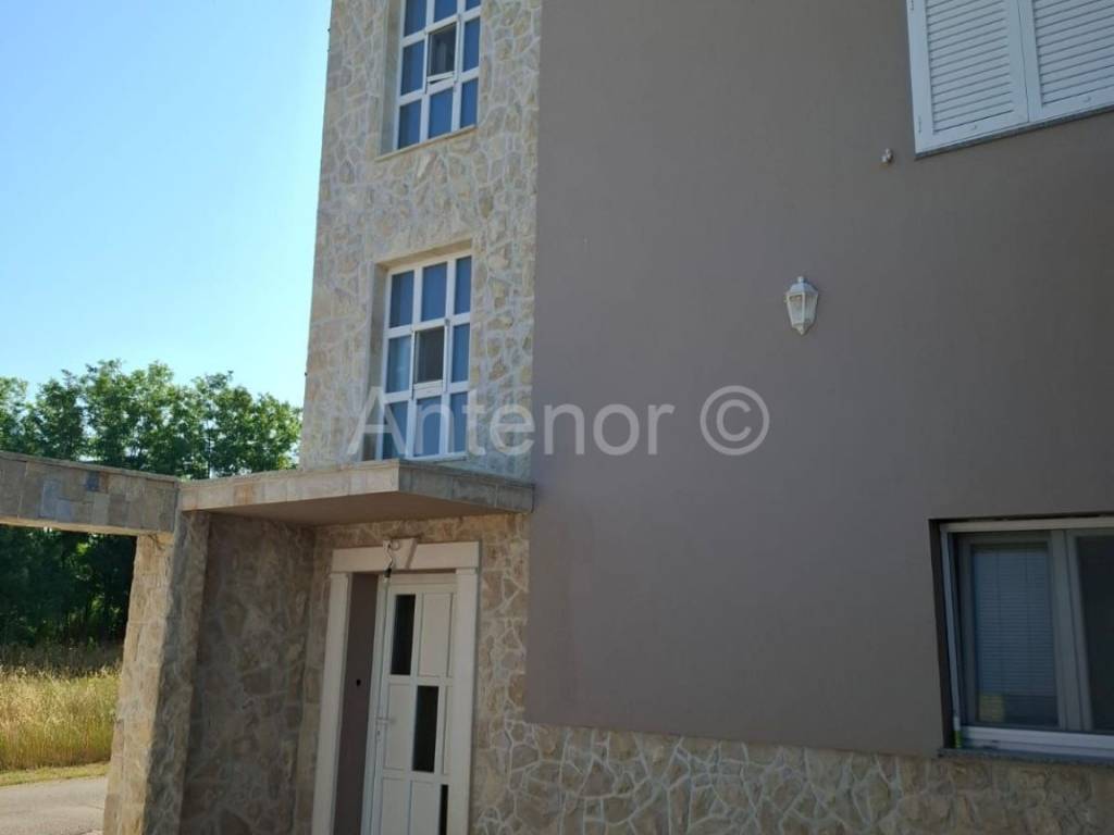 U prizemlju kuće nalaze se jedan dvosobna apartman sa kuhinjom, blagavaonom, dnevnim boravkom, kupaonicom, natkrivenom terasom, lođom i 2 spavaće sobe. U apartmanu jeprovedenopodno grijanje. U prizemlju se još nalaze dva jednosobna apartmana. Ukupna tlocrtna površina prizemlja je208,70m2.Na 1. katu površine 219,67m2 nalaze se dva jednosobna apartmana i jedan dvosobna apartman. Apartmani se sastoje od kuhinje, blagovaonice, dnevnog boravka, kupaonice, natkrivena terasa i lođe.Također, u dvosobnom apartmanu provedeno je podno grijanje.Potrkovlje je površine100,97 m2 i sastoji se od jednog apartmana sa2 spavaće sobe, dnevnim boravkom, kuhinja i blagovaonica, garderoba, 2 kupaonice i garderoba te 2 natkrivene terase. U apartmanu je uvedeno podno grijanje.Uz objekt se nalazi pomoćna građevina koja se sastoji od ljetne kuhinje i roštiljaukupne površine40,20m2. U dvorištu se nalazi i garaža.Svi apartmani su kompletno moderno namješteni. Okućnica kuće je uređena mediteranskim biljem i travnjakom. Ispred objekta se nalazi prostrano dvorište i parking za 10 vozila. Na objektu su i solarni paneli za grijanje i toplu vodu, a uziđan je i dimnjak pa postoji mogućnost ugradnje kamina.