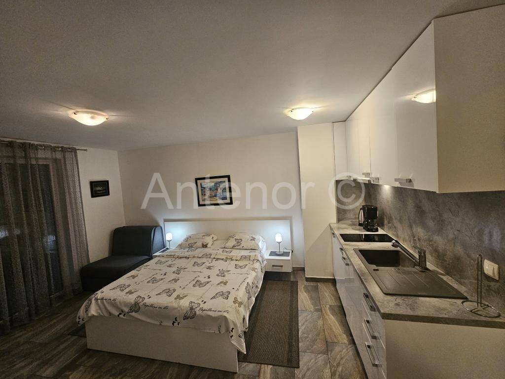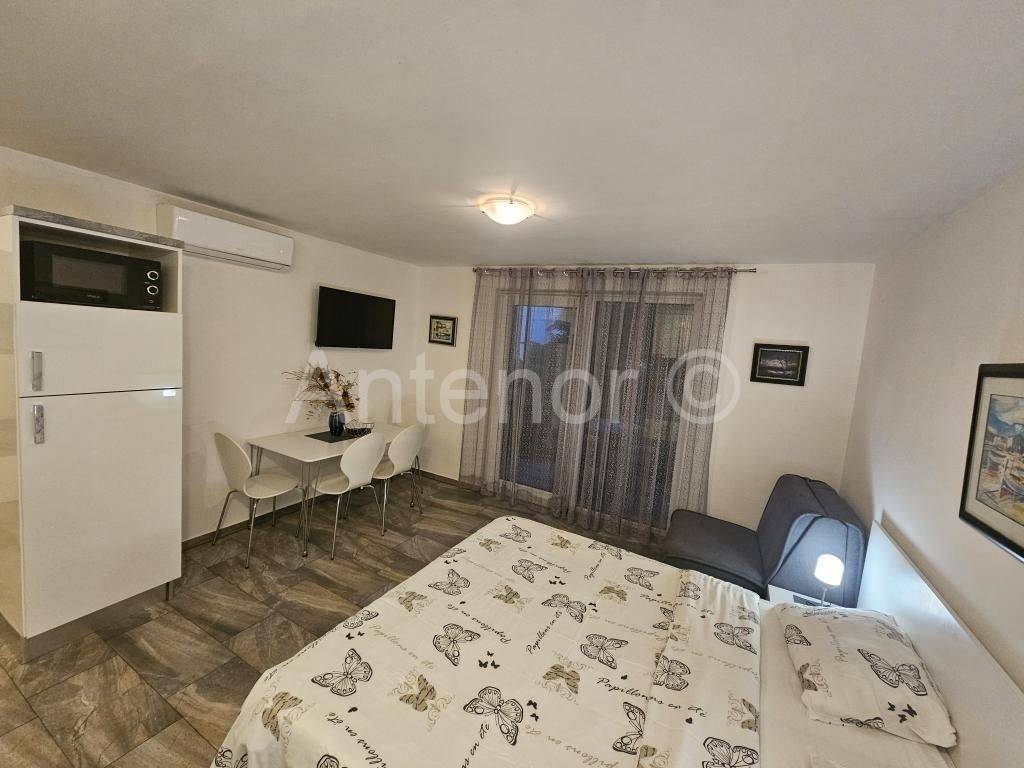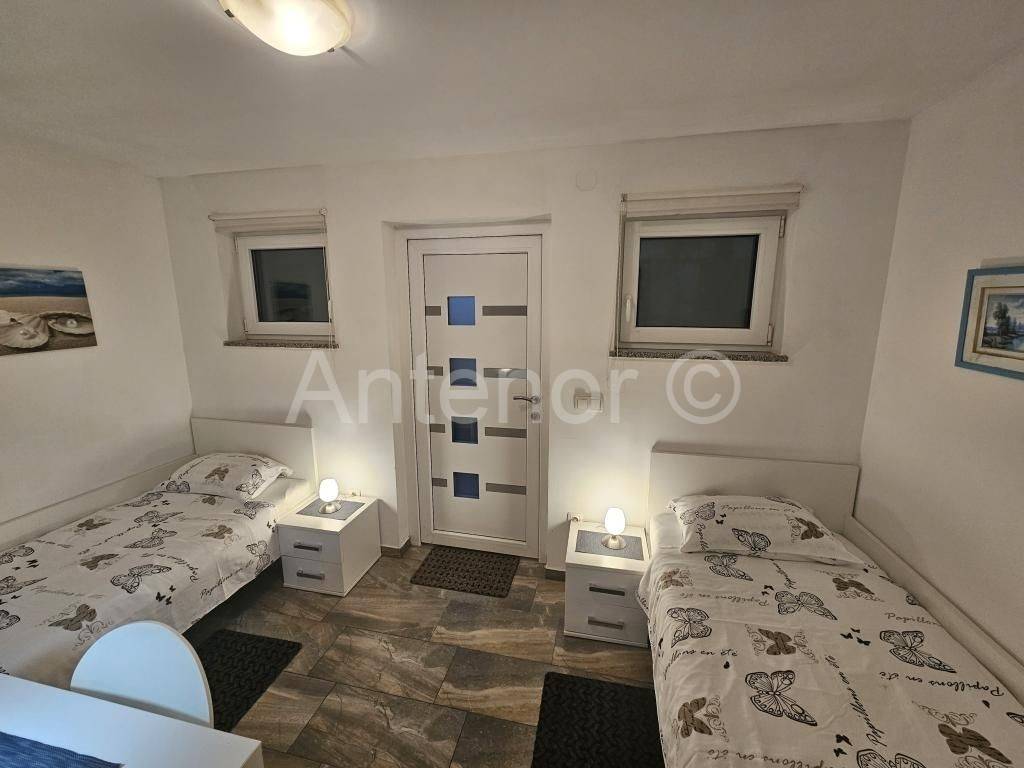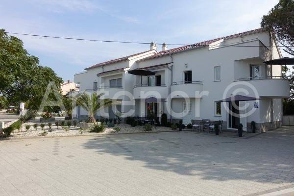 ZATON - NIN - dvojna kuća sa 5 stambenih jedinica. U prizemlju se nalazi jedan jednosoban apartman tlocrtne površine 41,08 m2 i jedan studio apartman tlocrtne površine 34,52. Na katu se nalazi također jedan jednosoban i jedan studio apartman iste površine. U potkrovlju se nalazi jedan jednosoban apartman površine 65,15 m2. Kuća se nalazi 1. red do mora, a izgrađena je na zemljištu od ukupno 450 m2.