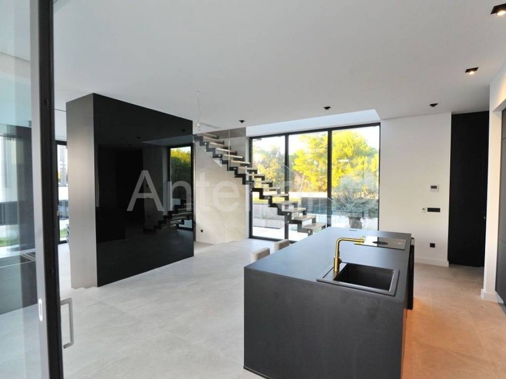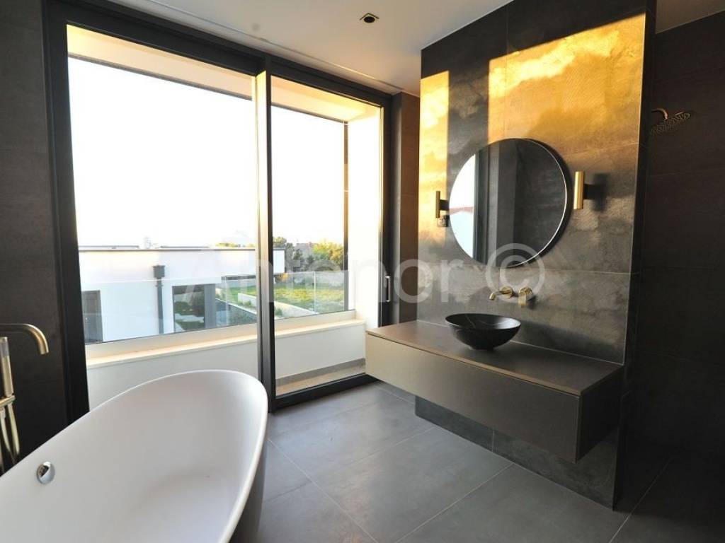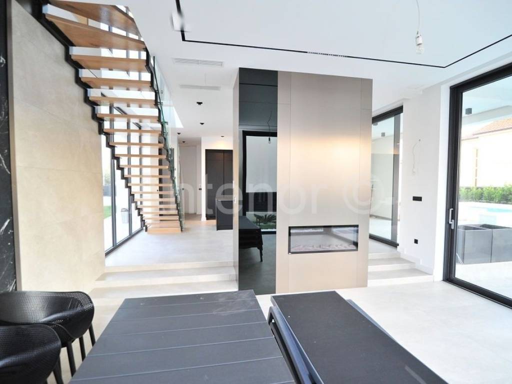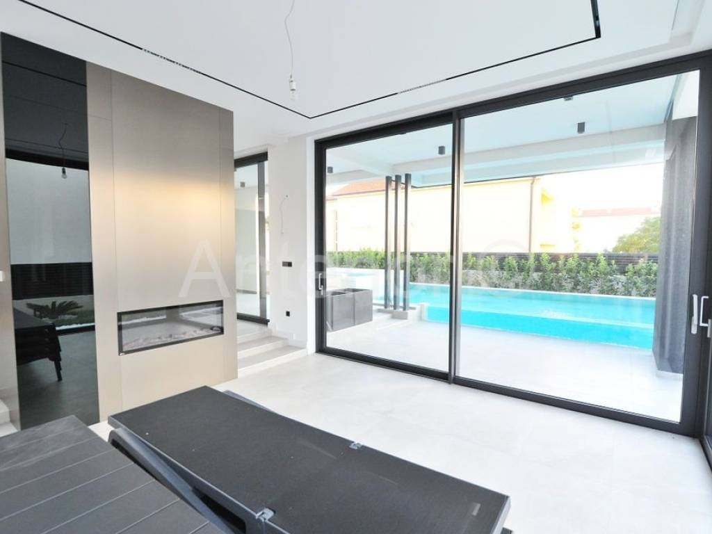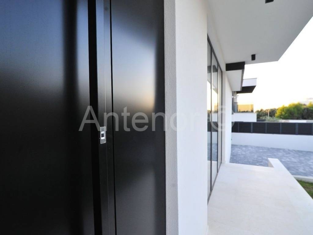 PRIVLAKA - vila sa bazenom, novogradnja.Kuća je smještena u mirnom dijelu mjesta Privlaka, 120 m do mora. Kuća je kompletno opremljena, a sastoji se od prizemlja i kata, vanjskih tlocrtnih dimenzija 15.80 x 12.40 metara. U prizemlju kuće nalazi se hodnik, kupaona, sauna, ostava, jedna spavaća soba, kuhinja s blagovaonicom, dnevni boravak i terasa. Unutarnjim stepenicama dolazi se na kat gdje se nalazi hodnik, spavaća soba s kupaonicom i garderobom, te još dodatne dvije spavaće sobe svaka sa svojom kupaonicom i terasa koja je dijelom natkrivena, a dijelom ne natkrivena. Okućnica kuće je uređena s autohtonom holtikulturom i bazenom sa jacuzzijem od ukupno 43 m2.