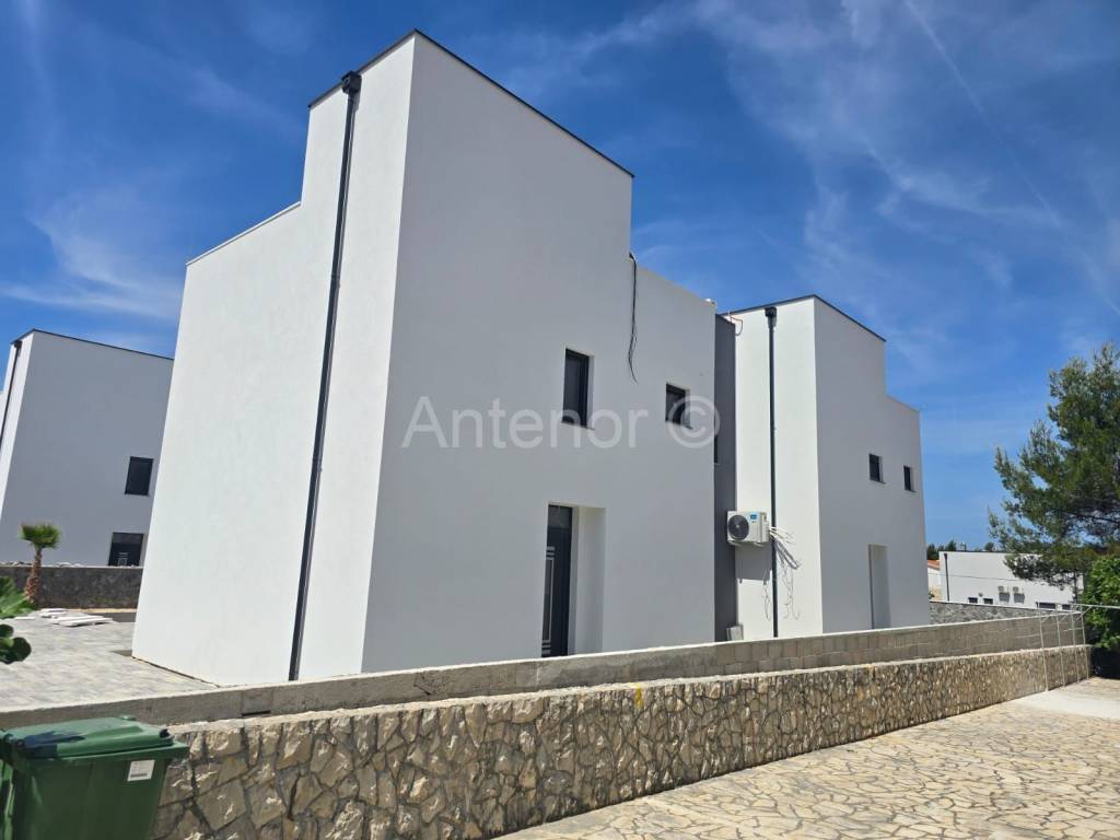 U prizemlju se nalazi natkriveni ulaz, ulaz, spremište ispod stepenica, kupaonica te open space - kuhinja, blagavaona i dnevni boravak iz kojih se izlazi na terasu i dvorište. Unutarnjim stubištem dolazi se na kat gdje se nalazi predsoblje, kupaonica, dvije spavaće sobe i jedna master spavaća soba sa vlastitom garderobom i kupaonicom. Iz svih spavaćih soba postoji izlaz na terasu. Također, kuća ima izlaz na krovnu terasu od 58 m2. U dvorištu kuće se nalazi parkirng.