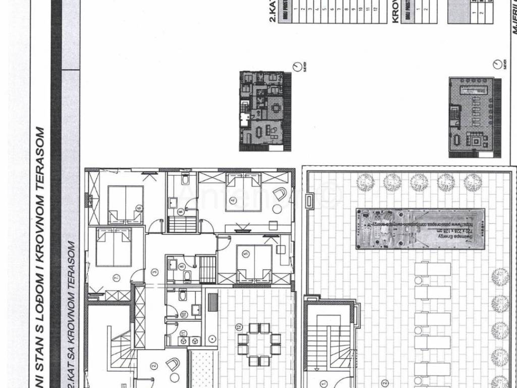 Prodaju se apartmani u Sukošanu smješteni u prvom redu uz more koji predstavljaju spoj elegancije i predivnog pogleda. Zgrada se sastoji od ukupno pet stanova. U prizemlju se nalaze tri stana, na prvom katu dva stana i na drugom katu penthouse. Netto površinapenthouse iznosi 249,1m2 Penthouseobuhvaća ulazni hodnik,hodnik, kuhinju sa blagavaonom i dnevnim boravakom, dvije kupaonice, toalet, master soba i tri spavaće sobe, ostavu i lođu. Krovna terasa obuhvaća stepenište i terasu ukupne površine od 61,76m2. Vlasnici apartmana mogu koristiti i zajednički bazen u dvorištu zgrade.