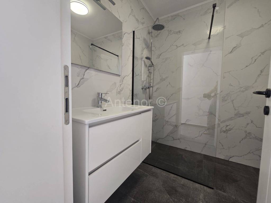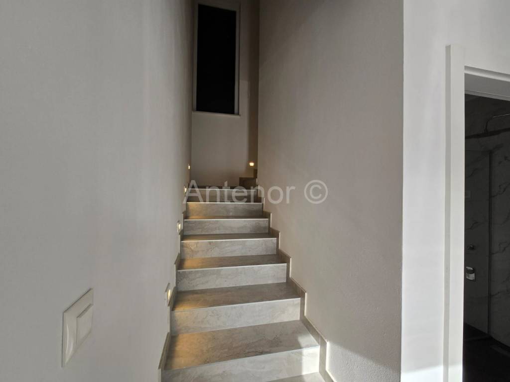 U prizemlju se nalazi ulaz, dnevni prostor, kupaonica i spremište, te naktrivena terasa. Unutarnjim stubištem dolazi se na kat gdje se nalazi hodnik, tri spavaće sobe, kupaonica i loggia.