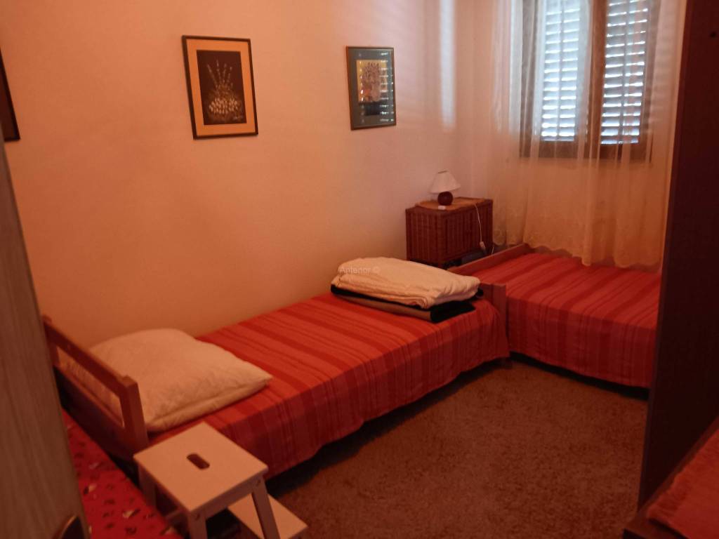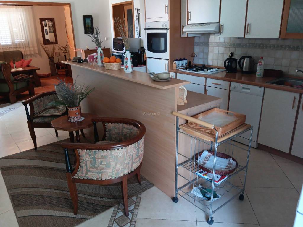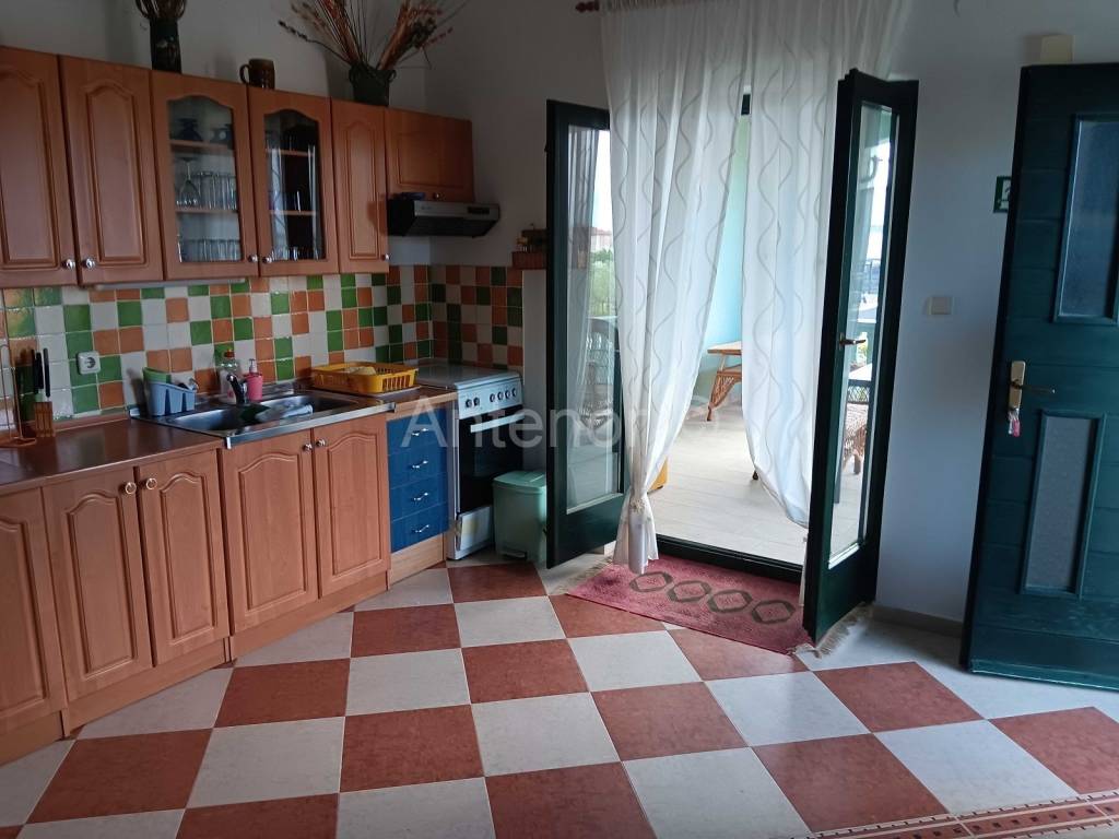 Vanjskim stubištem se dolazi na kat gdje se nalazi balkon, ulaz u stan, kuhinja, dnevni boravak, hodnik, dvije spavaće sobe i kupaonica. Iz dnevnog boravka se izalzi na prostranu terasu od 19,30 m2.