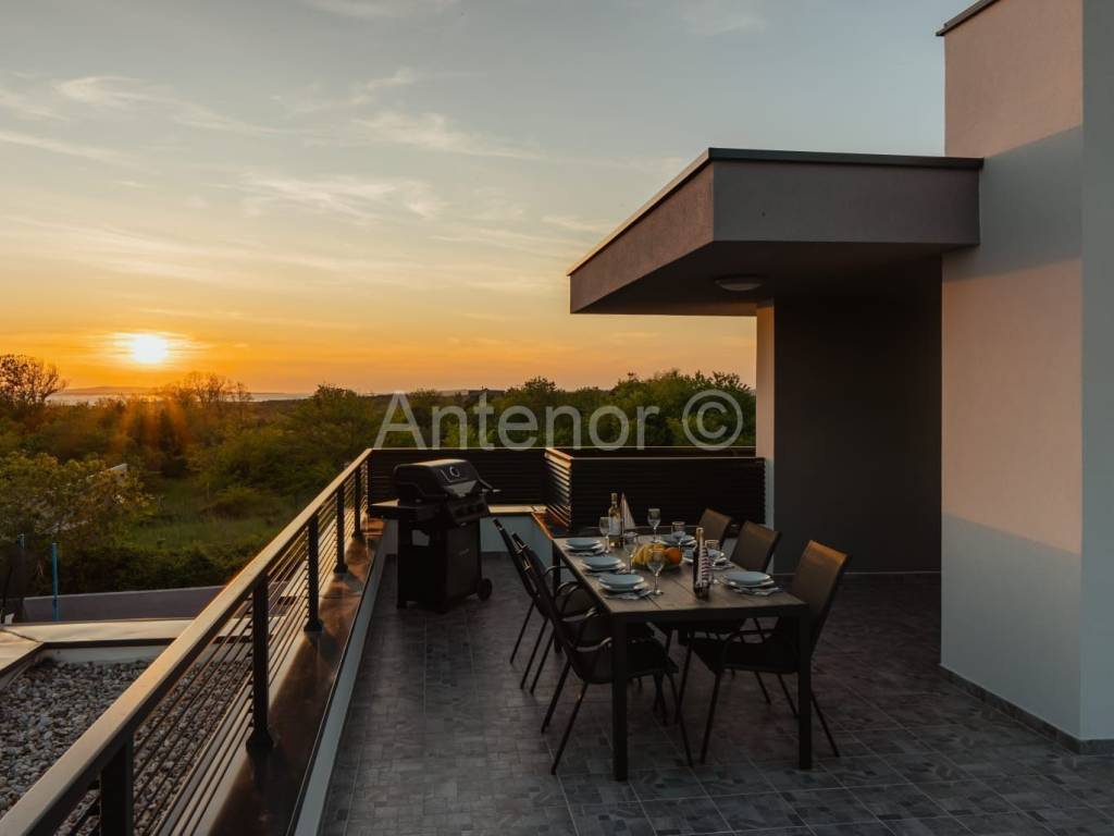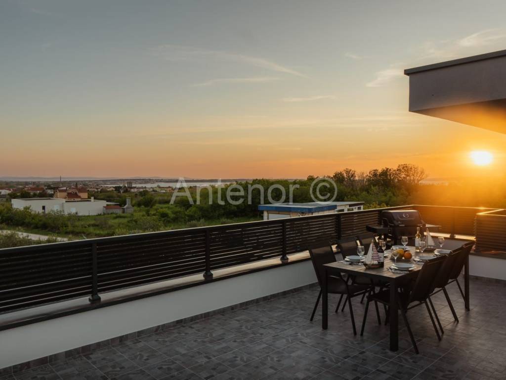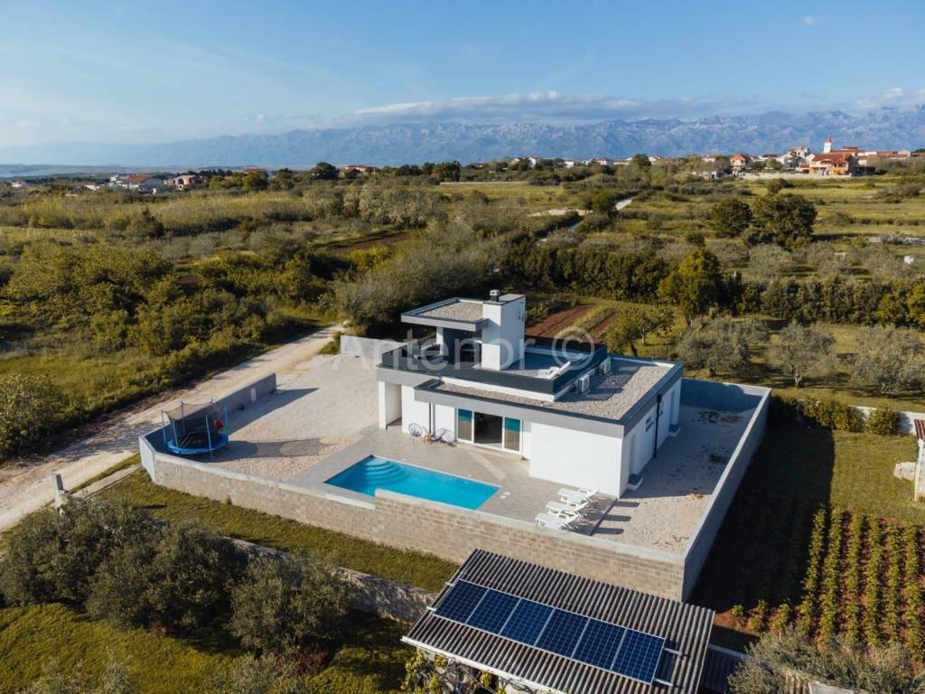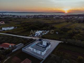 Kuća je sagrađena na pareceli površine 685 m2. Udaljenost od mora i plaže je 2 km. S krovne terase pruža se prekrasan pogled na more, ninski zaljev i Velebit.
