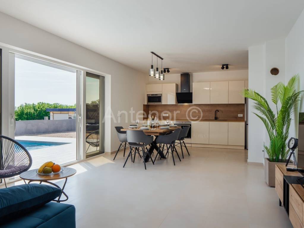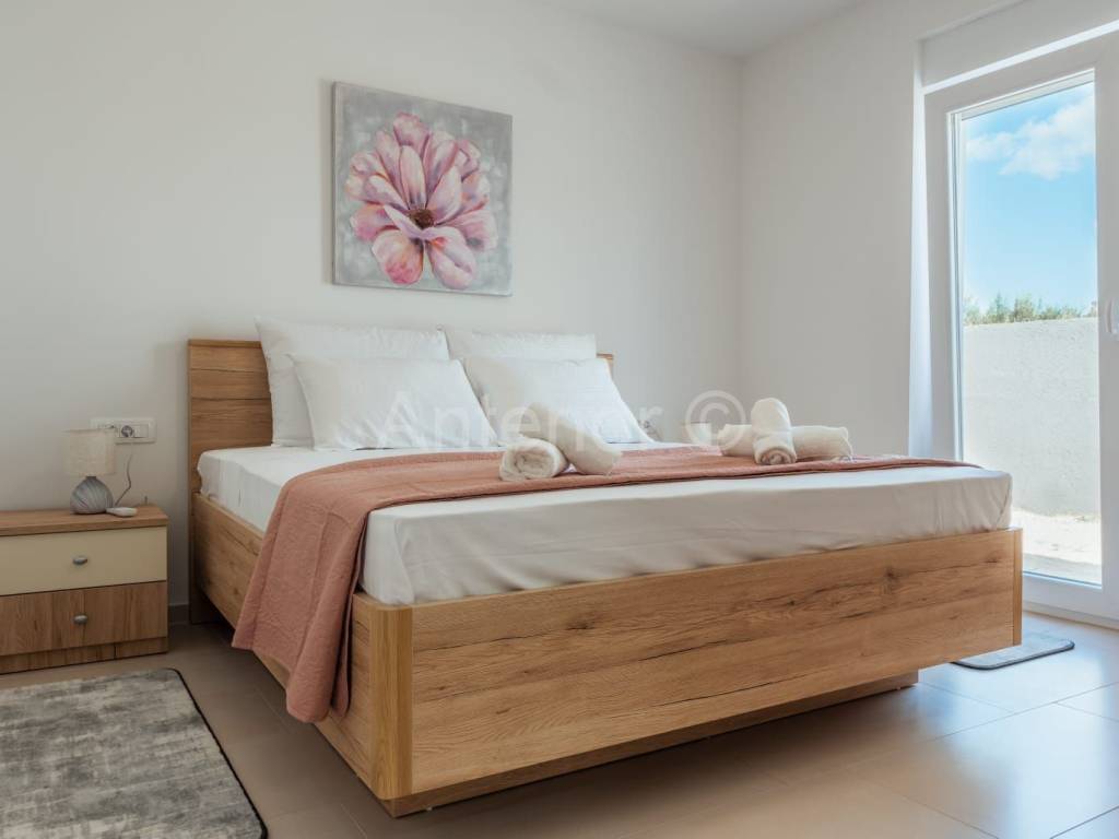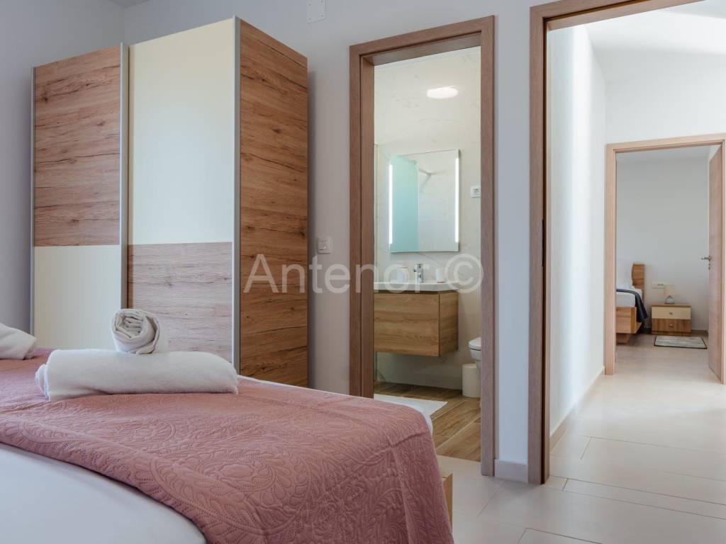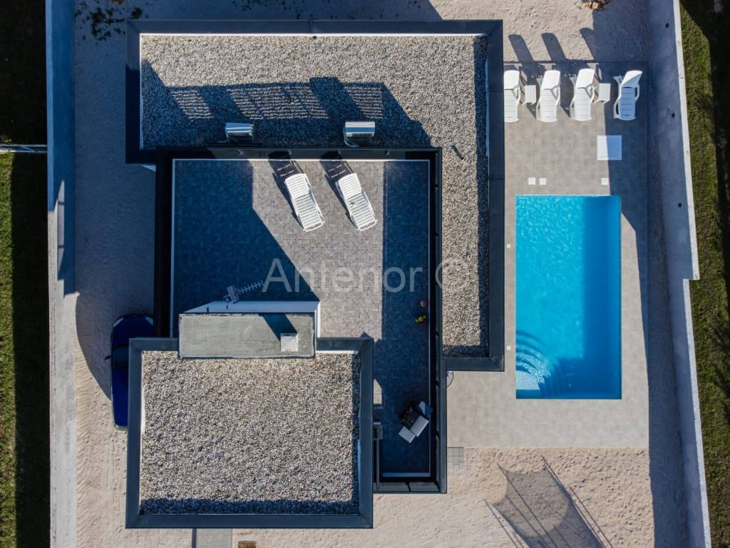 Kuća se nalazi 2 km od mora u mjestu Vrsi. Kuća se sastoji od prizemlja i krovne terase. U prizemlju se nalazidnevni boravak, kuhinja, blagavaona, tri spavaće sobe, tri kupaonice,ulazni prostor, wc, hodnik i terasa.