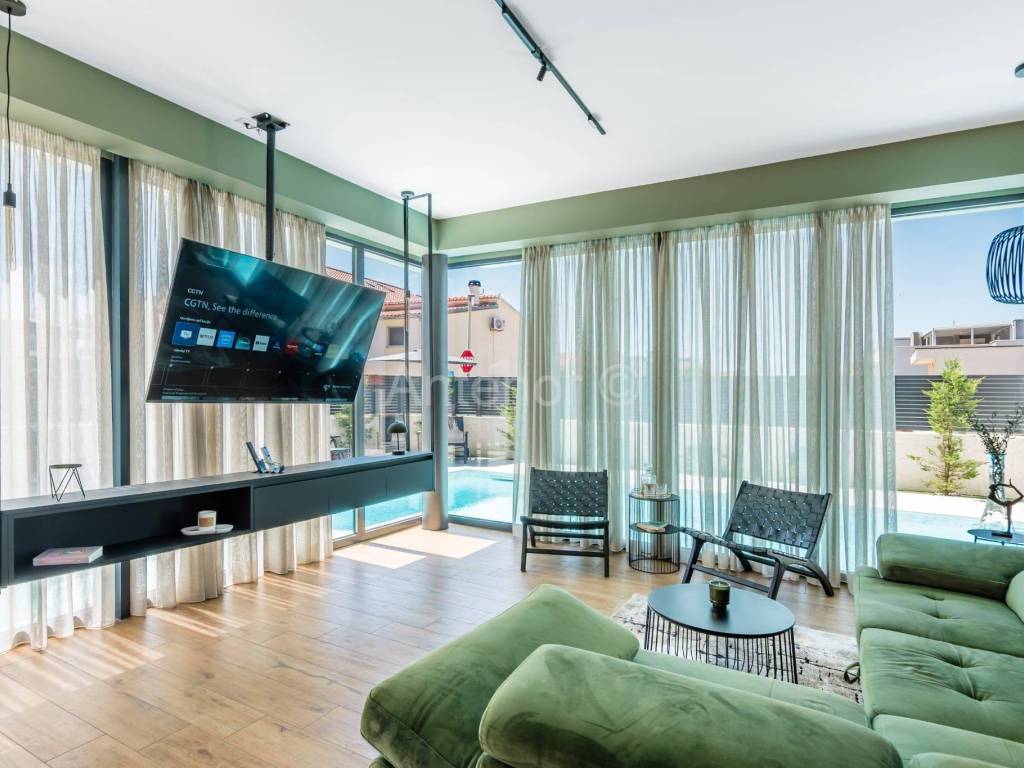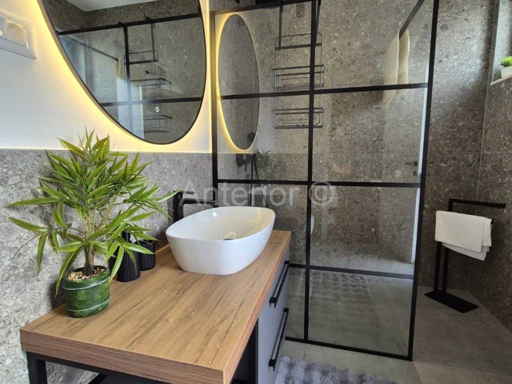 Vrsi-moderna kuća funkcionalnog tlocrta, a sastoji se od prizemlja i prvog kata. Podno grijanje biti će postavljeno kroz cijelu kuću, a klima uređaj je u svakoj prostoriji.