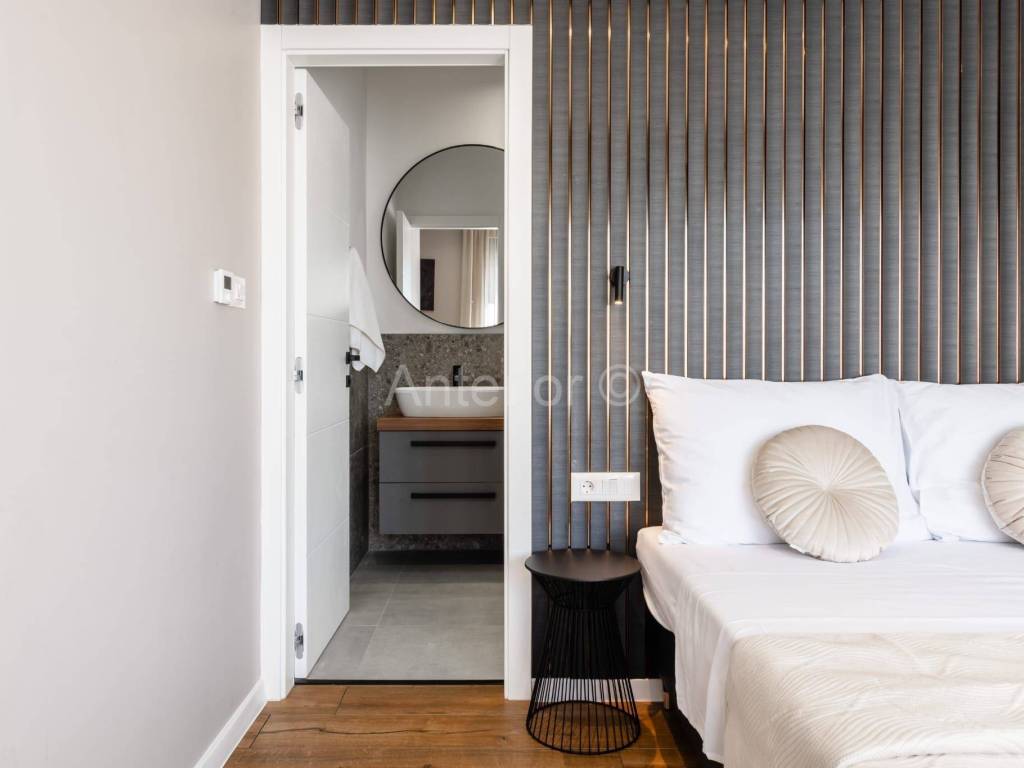Na prvi katse dolazi unutarnjim stepeništem koji jepovršine 96,5 m2.Kat se sastoji odhodnika, tri spavaće sobe od kojih svaka ima vlastitu kupaonicu, a jedna spavaća soba ima garderobu. Na katu se nalazi balkon površine 13,9 m2.